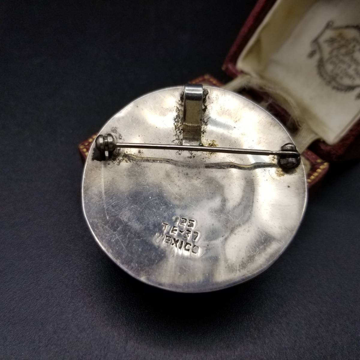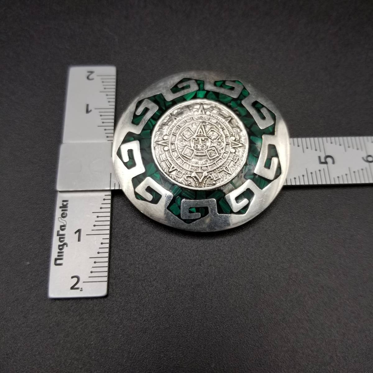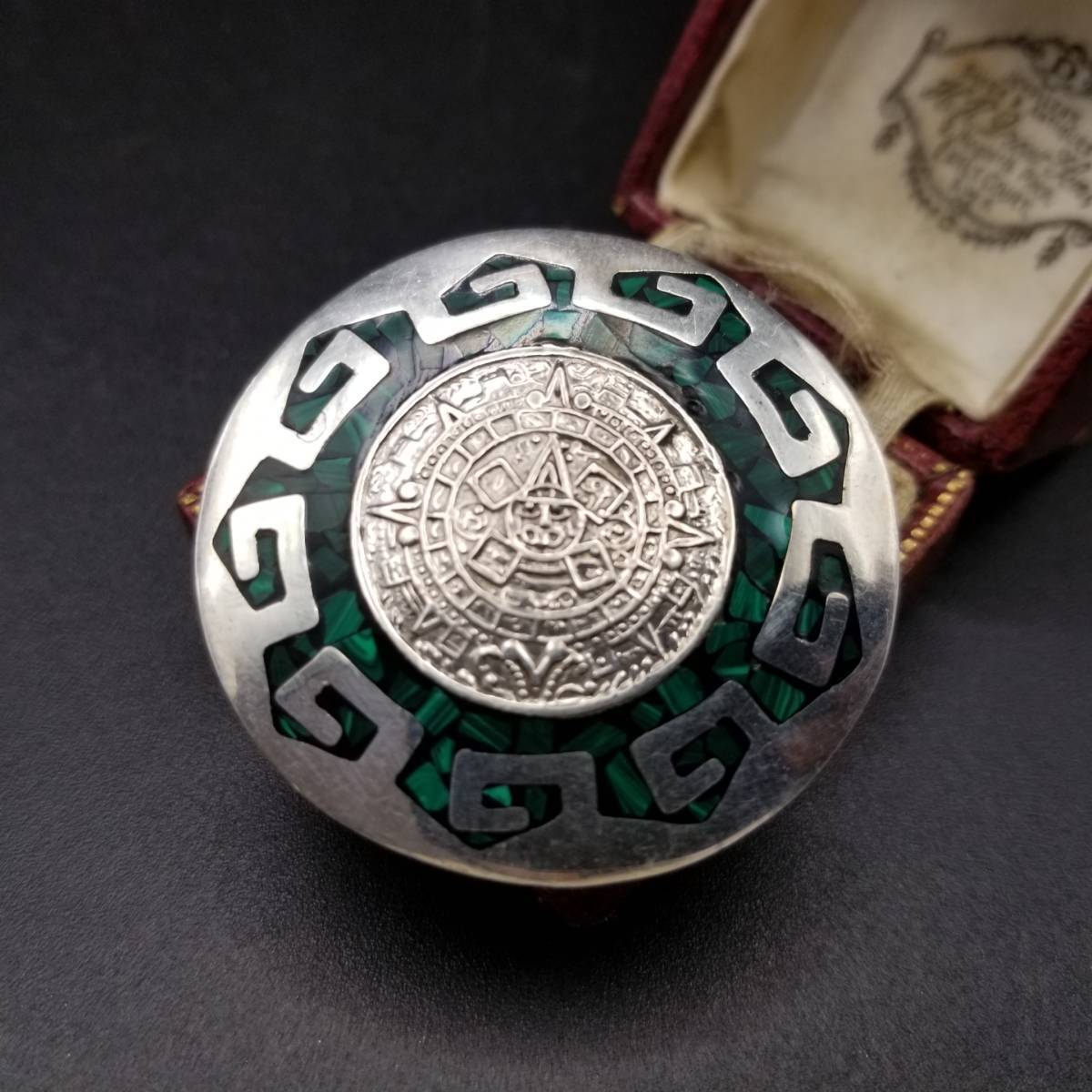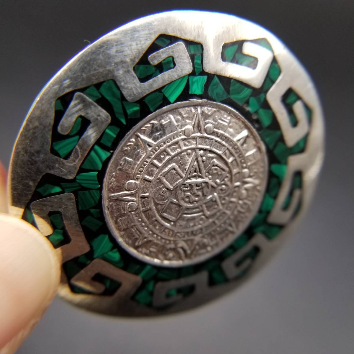 メキシコ TAXCO タスコ グリーン インレイ エンブレム 紋章 925 メキシカン ヴィンテージ シルバー ブローチ ペンダント 輸入 Y11-G