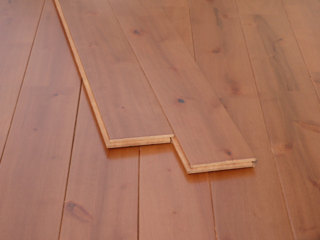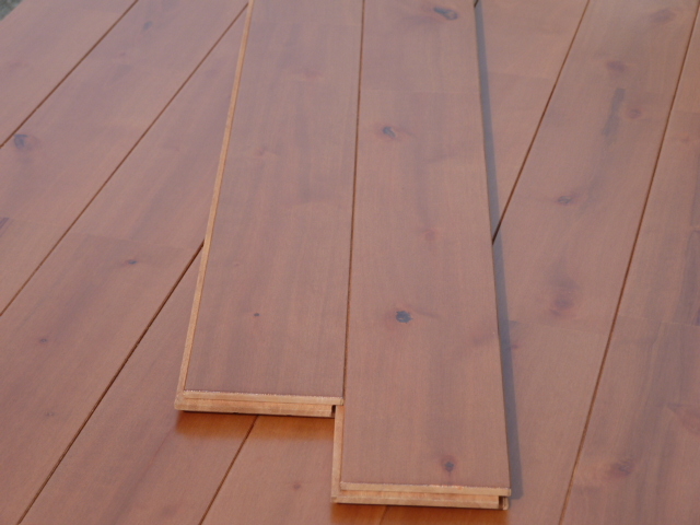 優良材西南桜の無垢フローリング ダメージグレード チーク色UV塗装品! 色違いが特に多いグレードに濃いめのチーク色塗装を施して、アンティーク風に仕上げた商品です。フローリングと言えばナラ材かさくら材というぐらいのシェアーを誇っていた木材です。優しい木目と色合い、そしてその適度な硬さは人やペットの床に最も適した木材の一つと言えるでしょう。