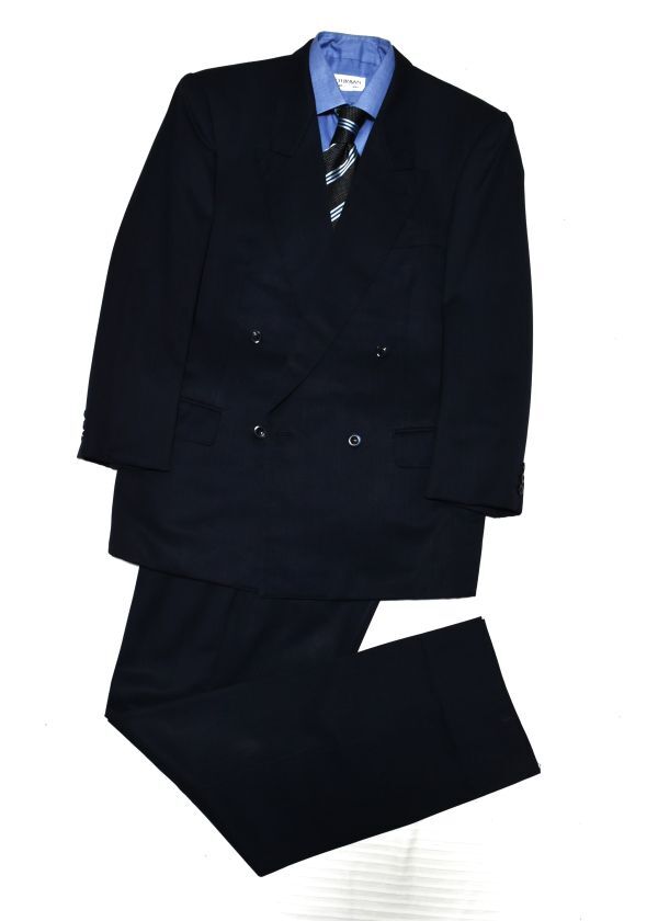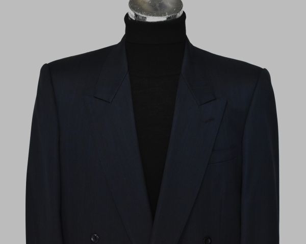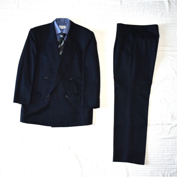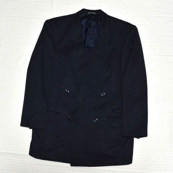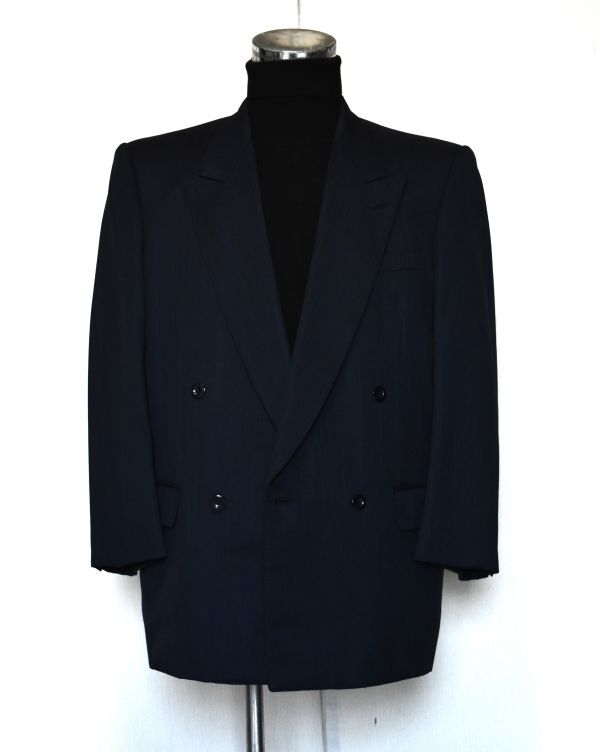 ★dunhill★ダンヒル★百貨店オーダー★ネイビー同ストライプ#ロゴ入裏地#極上の生地&仕立て#男らしく、お洒落なWスーツ#差をつける一流品L