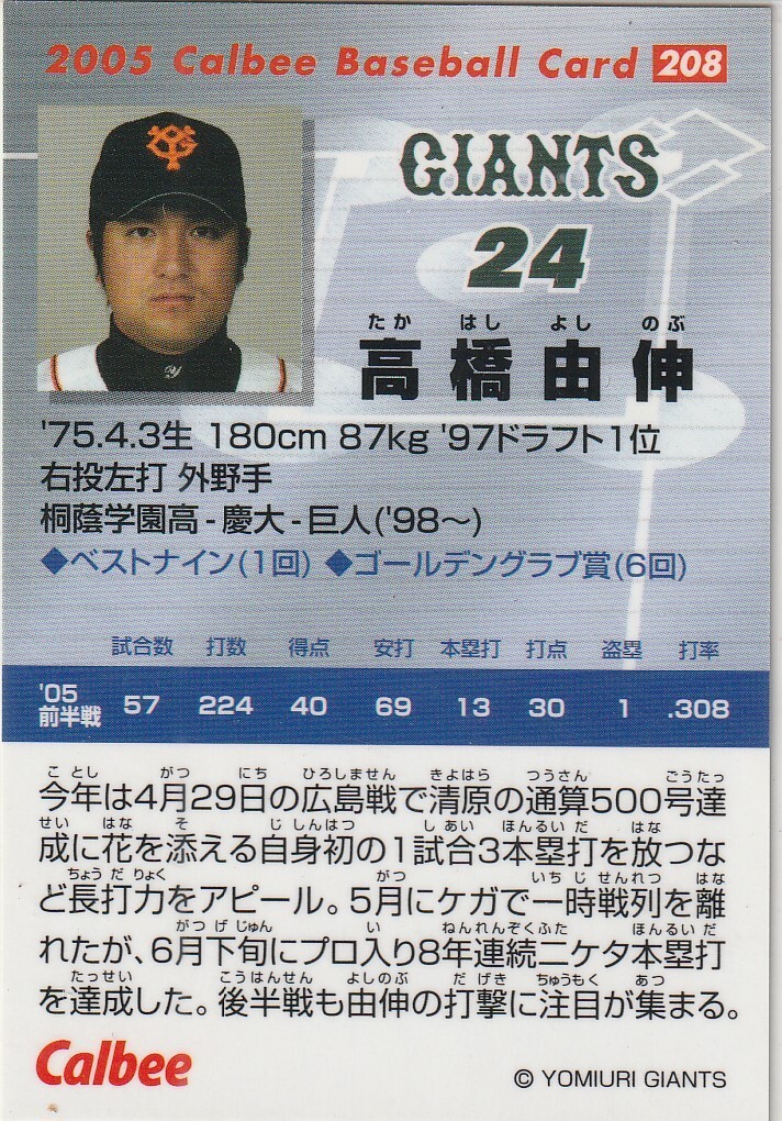 ●2005カルビー 【高橋 由伸】 BASEBALL CARD No.208:巨人 R