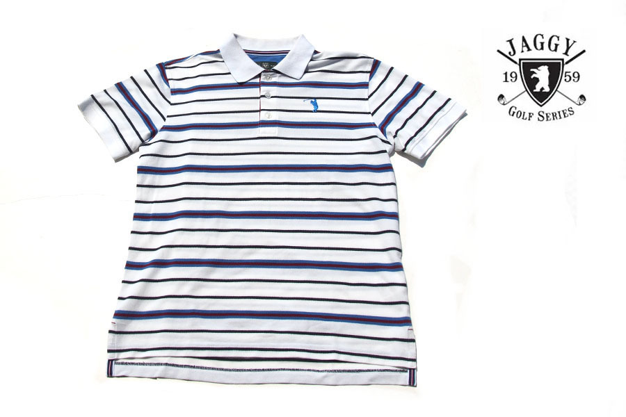 送料無料★【中古】ジャギーゴルフ|jaggy golf|ボーダー柄半袖ポロシャツ|メンズゴルフウェア|L