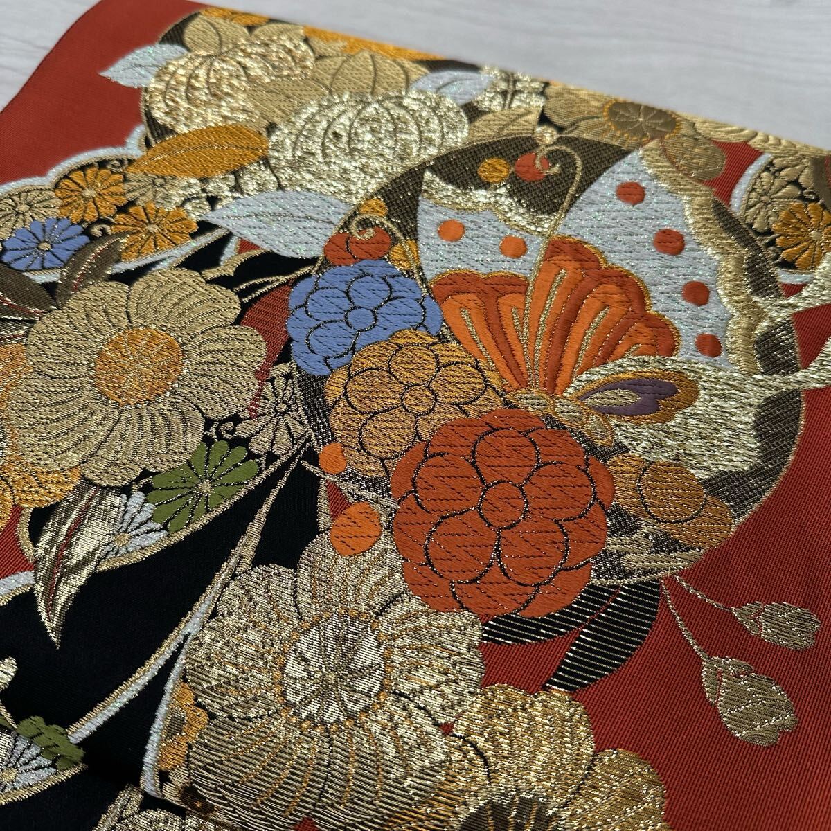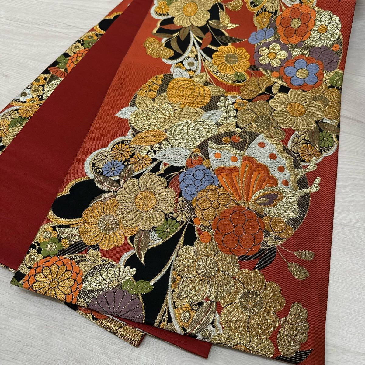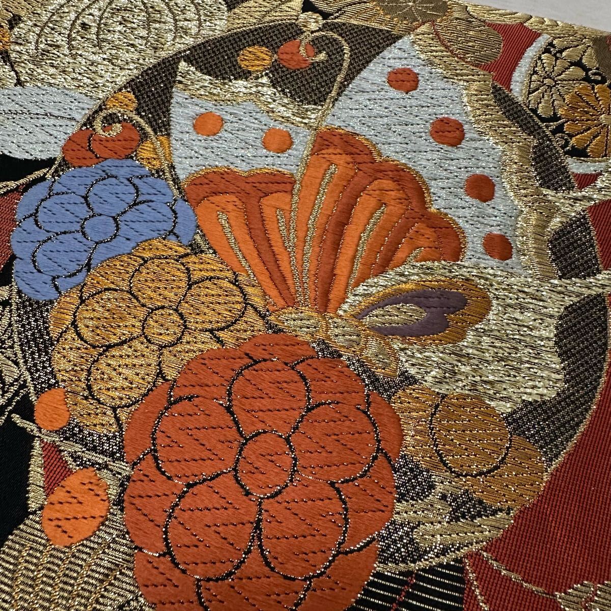 袋帯 能衣藤蝶文 有楽 豪華唐織 六通 正絹 着物 W-3280