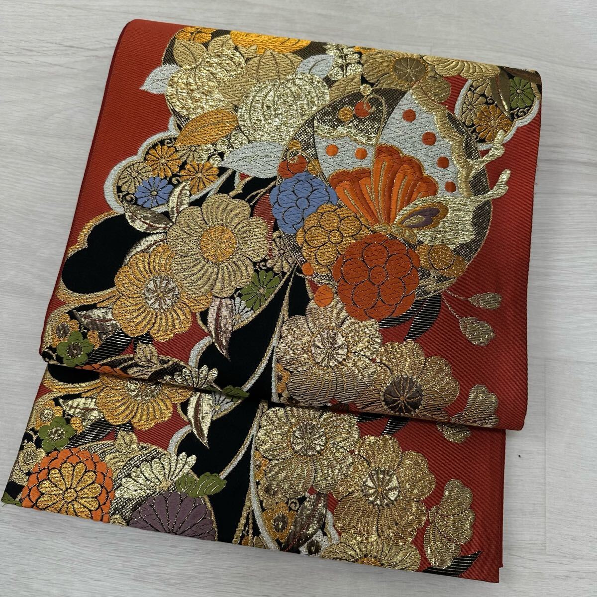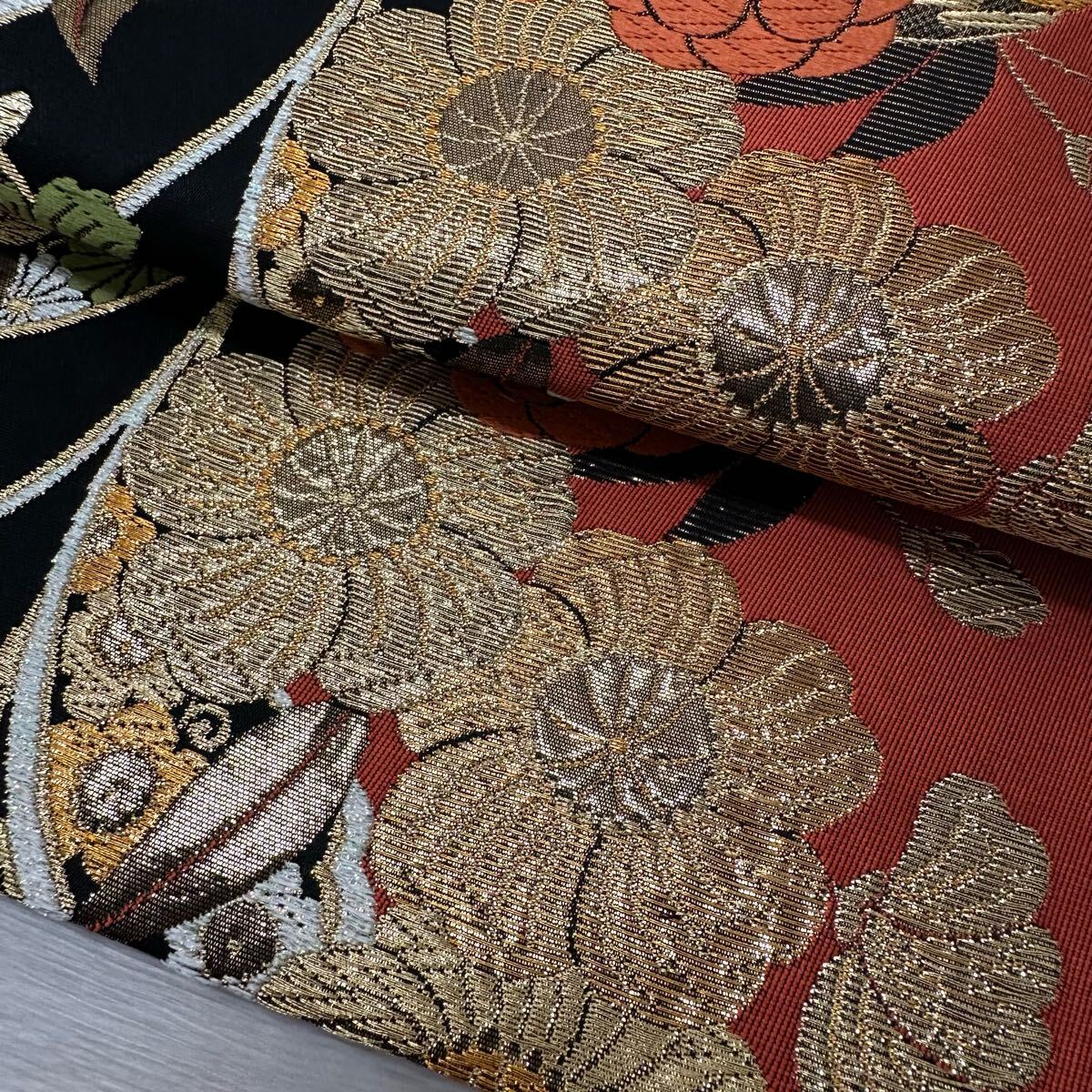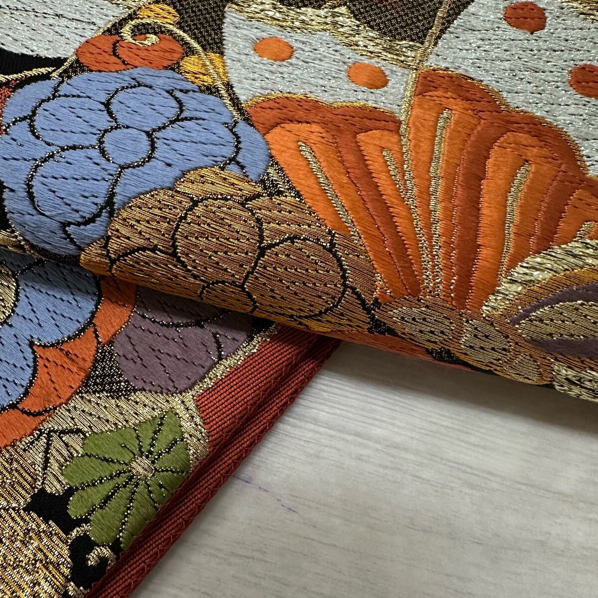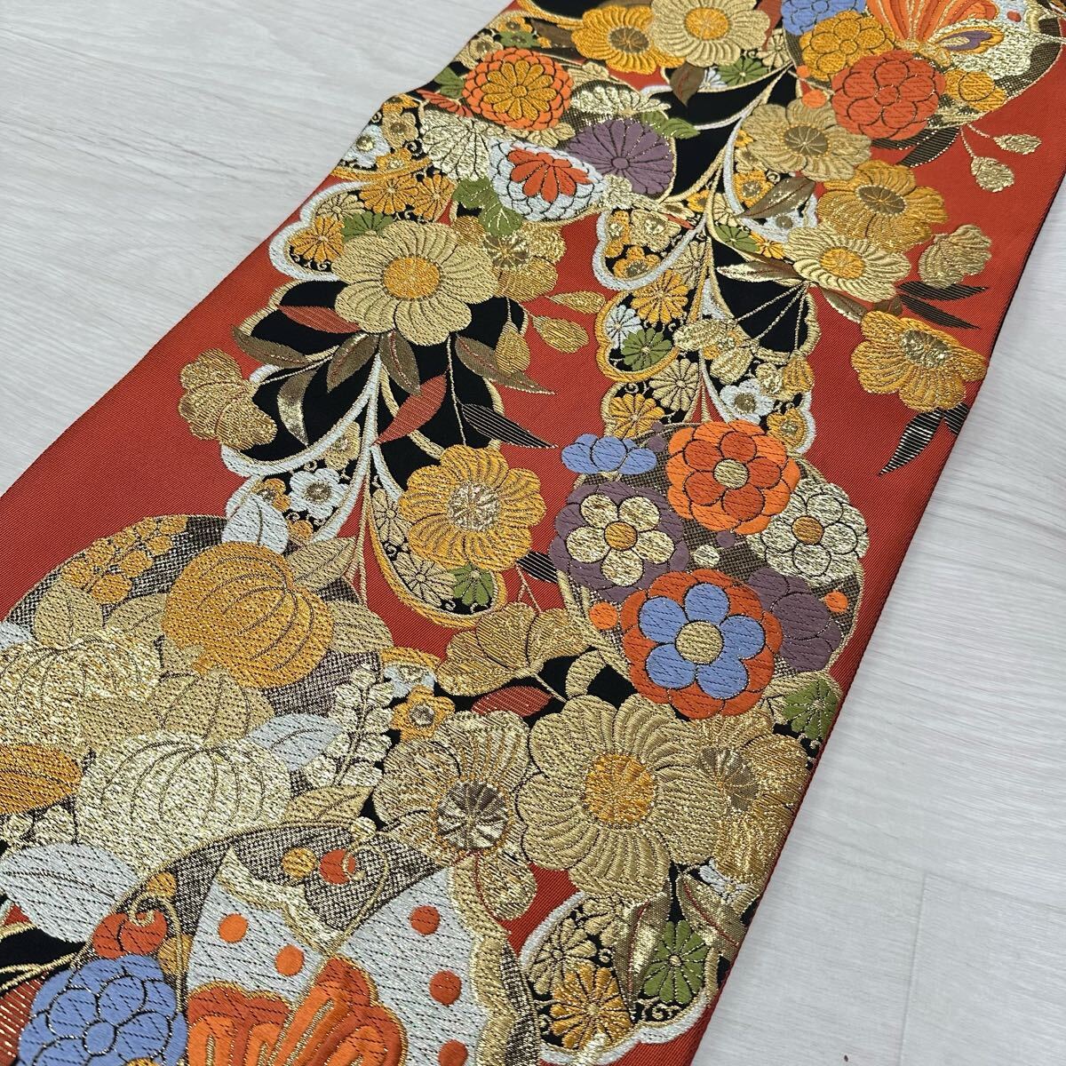 袋帯 能衣藤蝶文 有楽 豪華唐織 六通 正絹 着物 W-3280