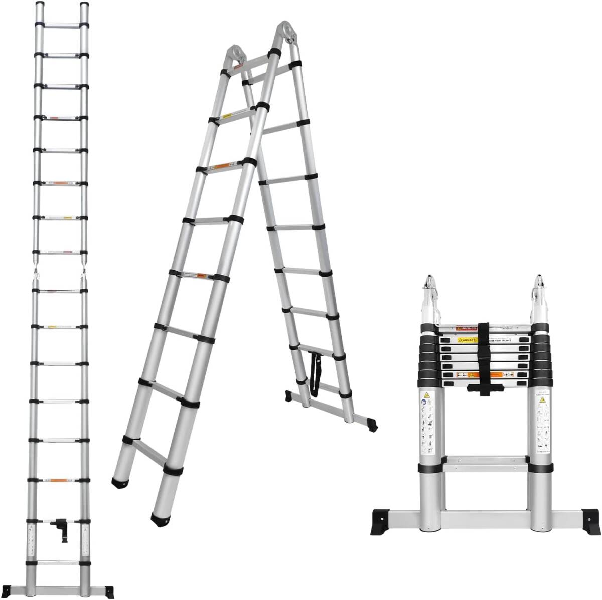 DayPlus 伸縮はしご 両用梯子 脚立最長 2.5M+2.5M 伸縮はしご最長5m 兼用脚立 スーパーラダー 折り畳み伸縮梯子 多機能アルミはしご 持ち運びに便利 軽量 耐荷重150 kg 室内室外両用 自動ロック 安全ロック スライド式 アルミ梯子 ホームロフトオフィスに適合