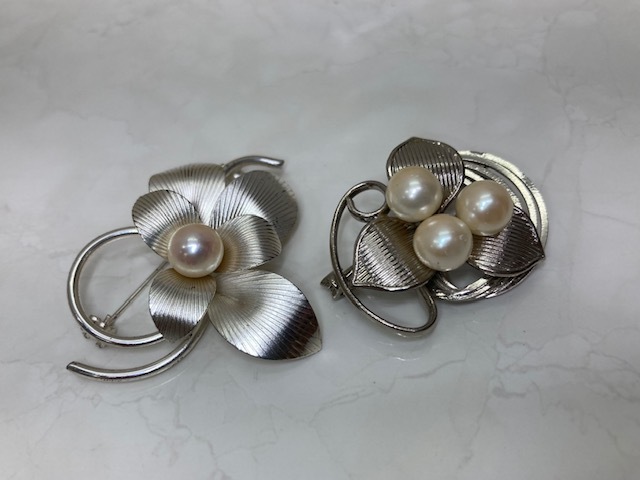 【美品】シルバーメッキブローチ ペンダントトップ2点おまとめ 真珠 洋銀刻印 アクセサリー イミテーション 冠婚葬祭 ファッション 495 | |||