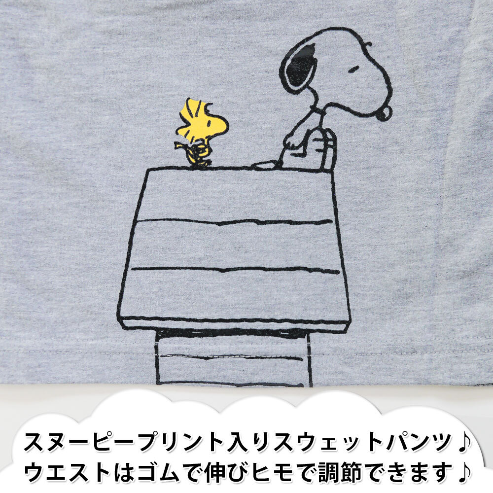 正規店仕入れの新品未使用品です 綿とポリエステル素材で、吸汗速乾に優れます スヌーピープリント入りスウェットパンツ ウエストはゴムで伸びヒモで調節できます |