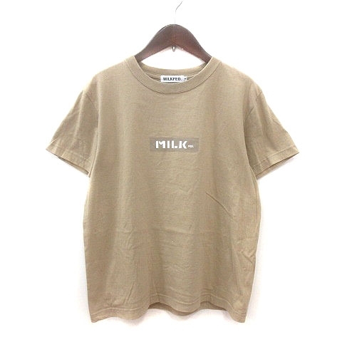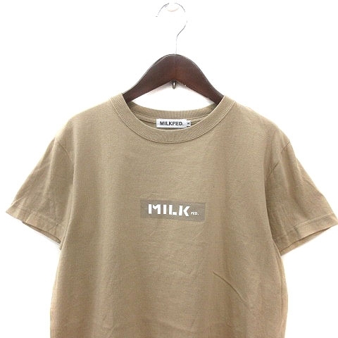 ミルクフェド MILKFED. Tシャツ カットソー クルーネック プリント 半袖 S ベージュ 白 ホワイト /MS レディース