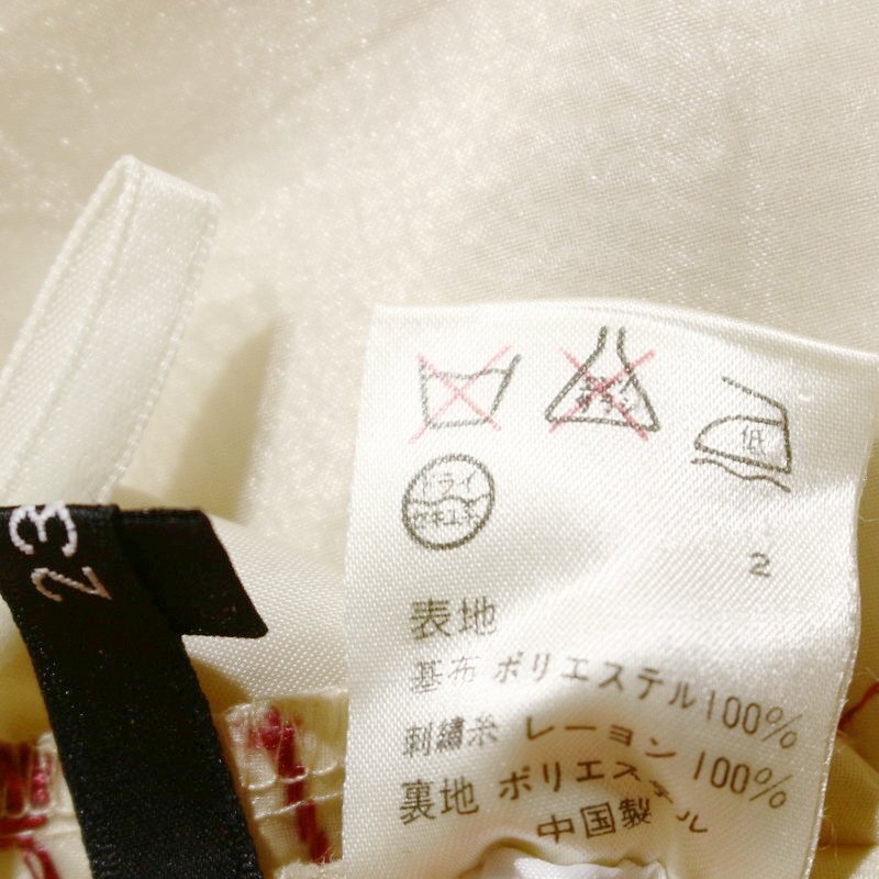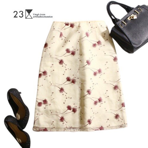 美品 23区 株) オンワード樫山 春 夏 オーガンジー 刺繍 フラワー 柄 フォーマル Aライン スカート 9号 38 ライトベージュ ミセス 綺麗め