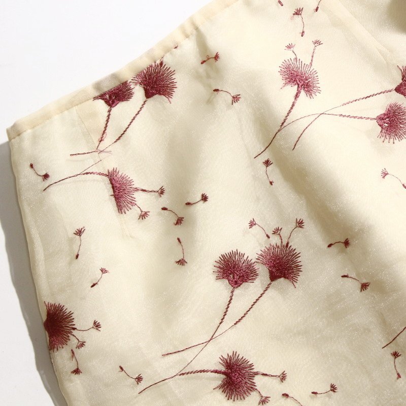 刺繍柄オーガンジー生地、ファスナーは左側、綺麗めデザインです。