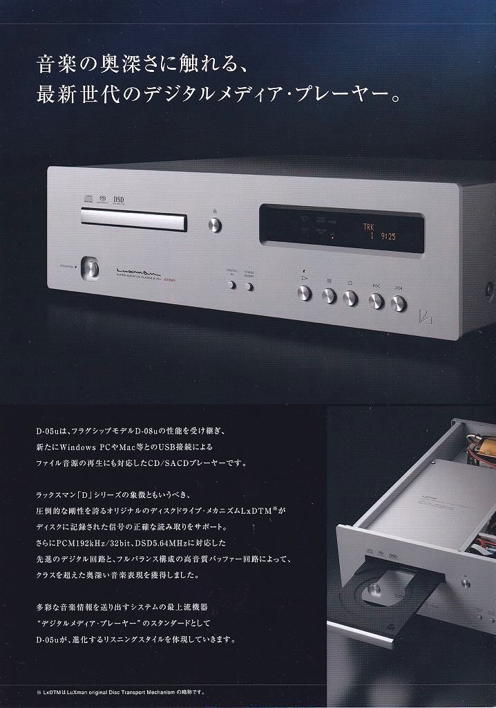 ラックスマン LUXMAN スーパーオーディオCDプレーヤー/D-05u の カタログ(未使用美品)です・A4版 見開き、全2頁・メール便 発送、可能商品です。