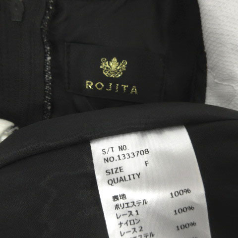 ロジータ ROJITA ツイードレイヤード風ワンピース 1333708 フリル ハートボタン リボン パール 長袖 レースアップ ひざ丈 黒 白 F