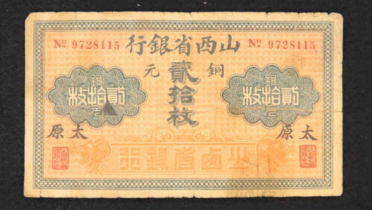 *[令]中国紙幣 山西省銀行 20銅銭(1924)P-S2634a[3763]7o2