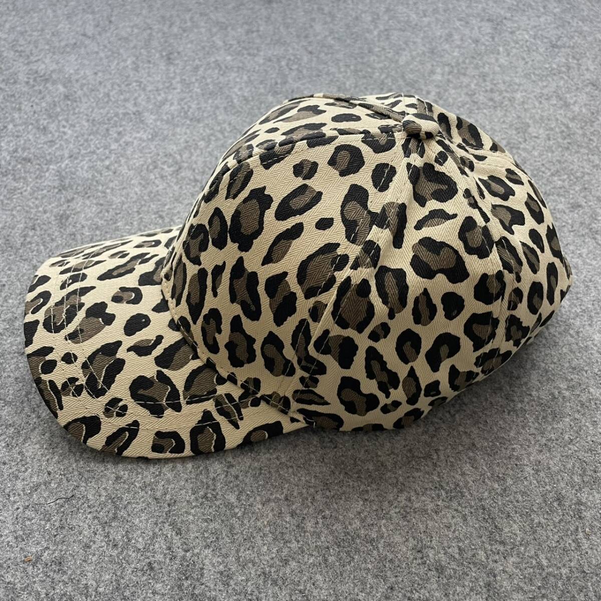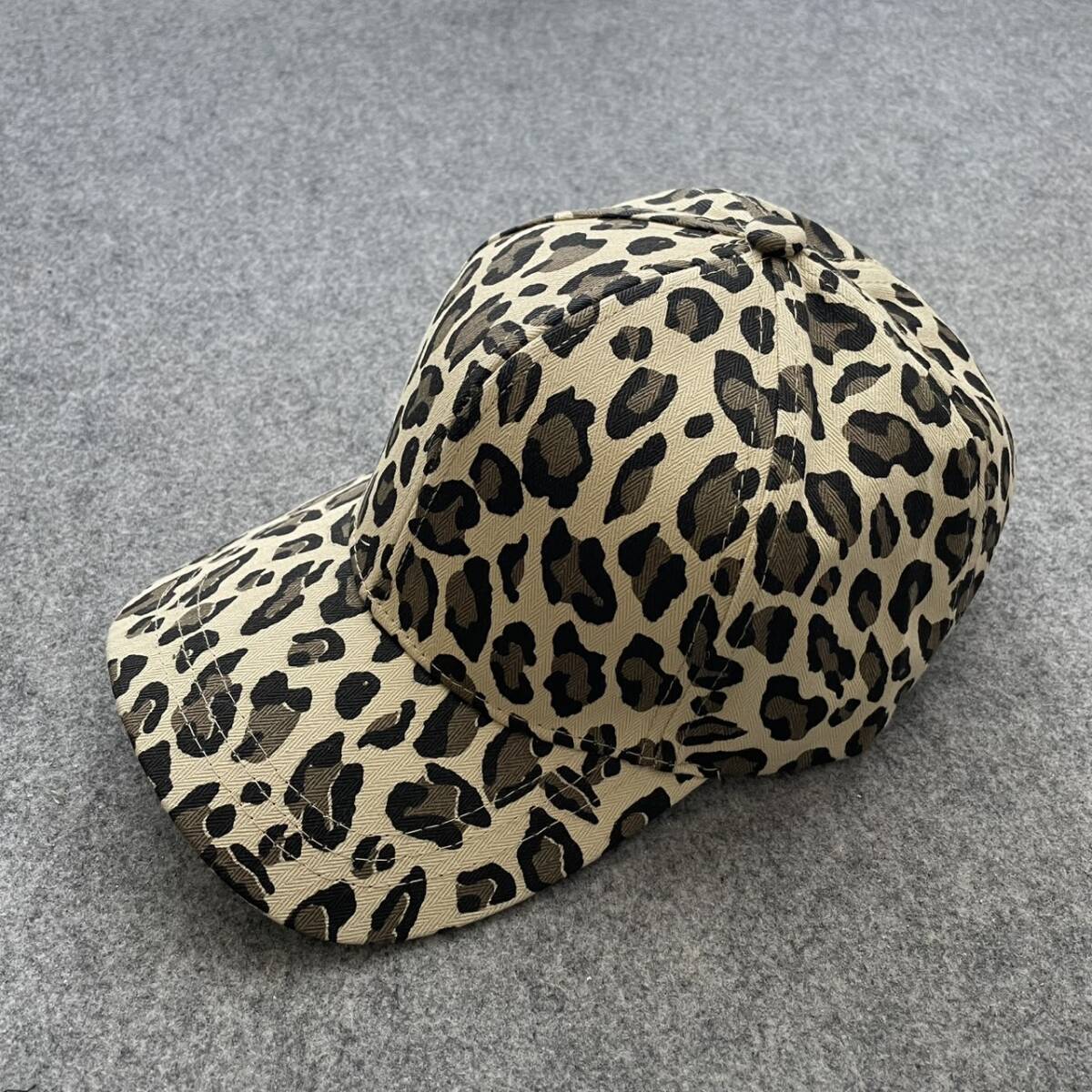 ベージュ ヒョウ柄キャップ やわらか生地 バックベルトで調整可能