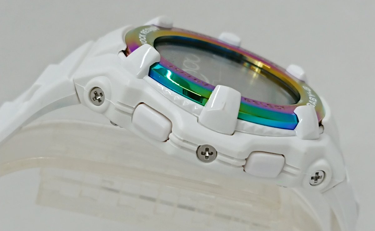 爽やかなホワイトをベースカラーに、ベゼル部にはレインボーI Pを施し、カラフルな虹を表現。