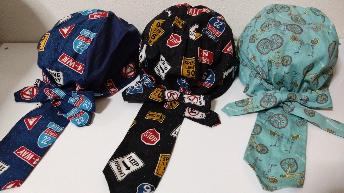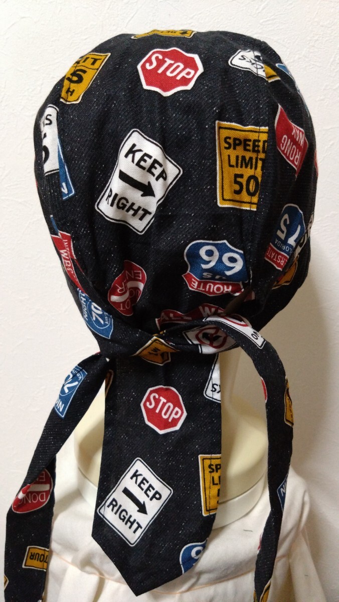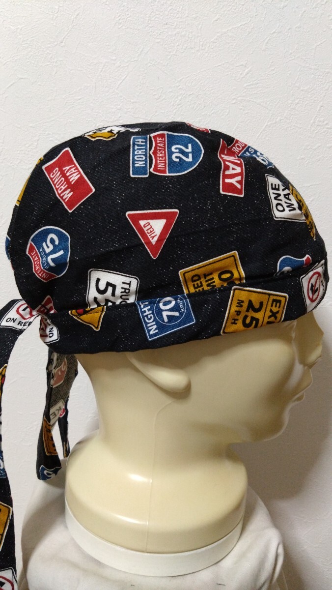 ★バンダナキャップ★ハンドメイド まとめ売り 自転車柄 水色 道路標識 黒 紺