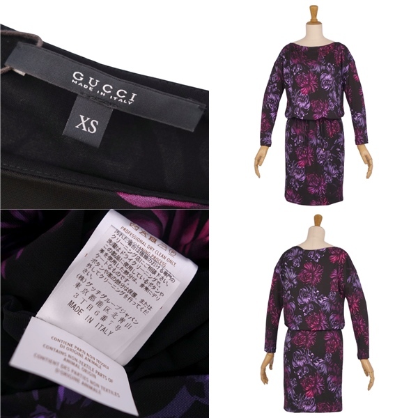 | 未使用 グッチ GUCCI ワンピース ロングスリーブ 長袖 総柄 レーヨン ジャージー トップス レディース XS マルチカラー |