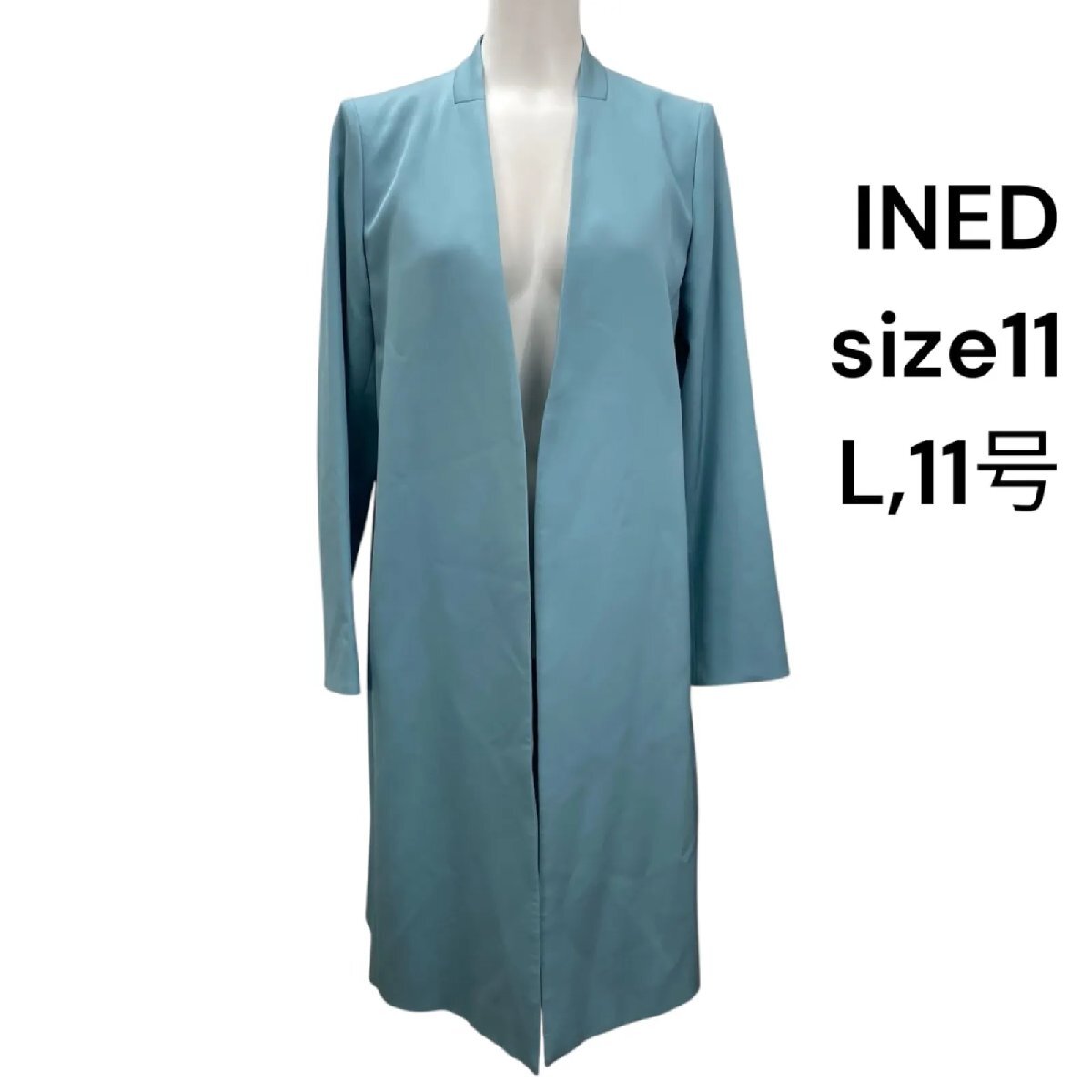 イネド INED ロングコート オープンスタイル ライトブルー 11、L、11号 レディース S5T404