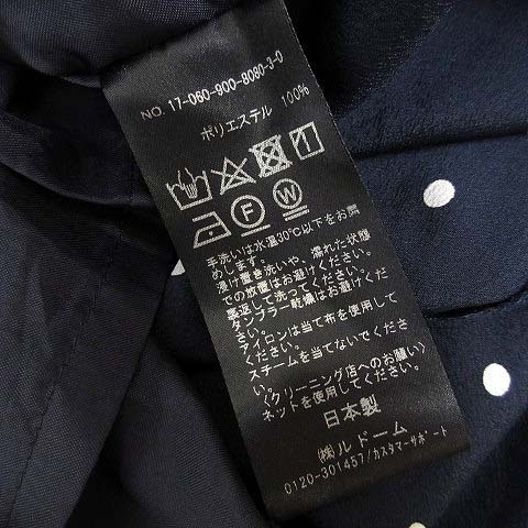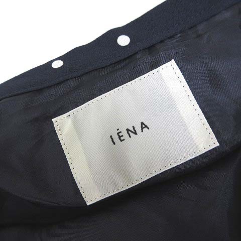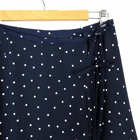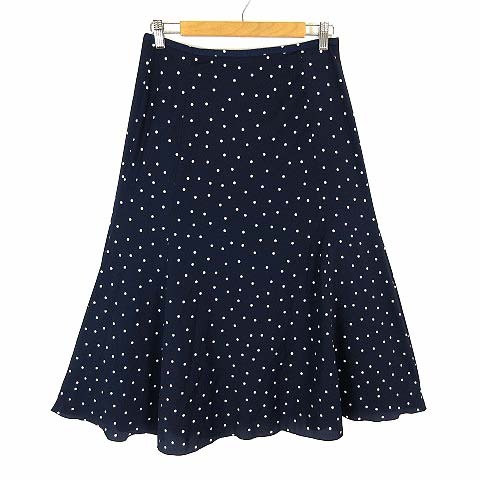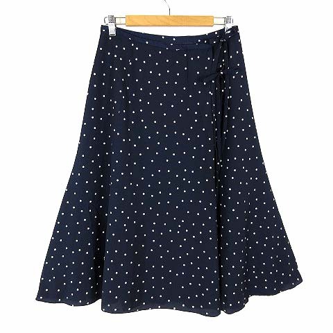 イエナ IENA スカート ライトデシン ドット プリント フレア ロングスカート サイドリボン とろみ 落ち感 L 40 紺 ネイビー オフ白