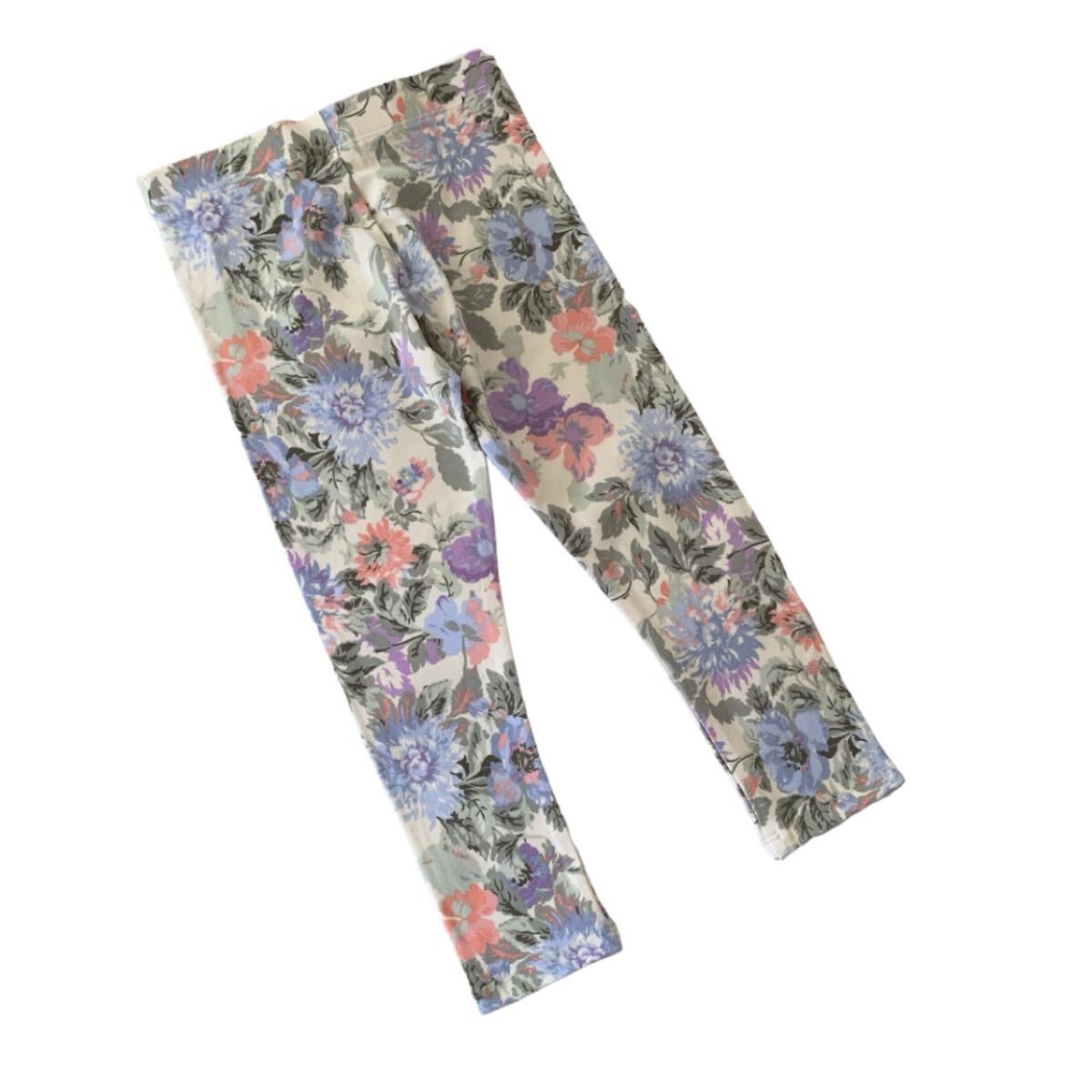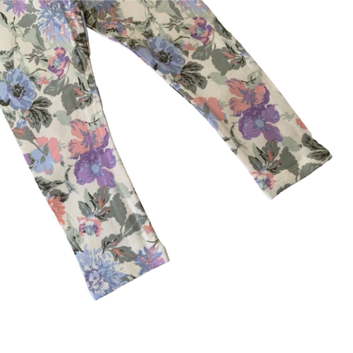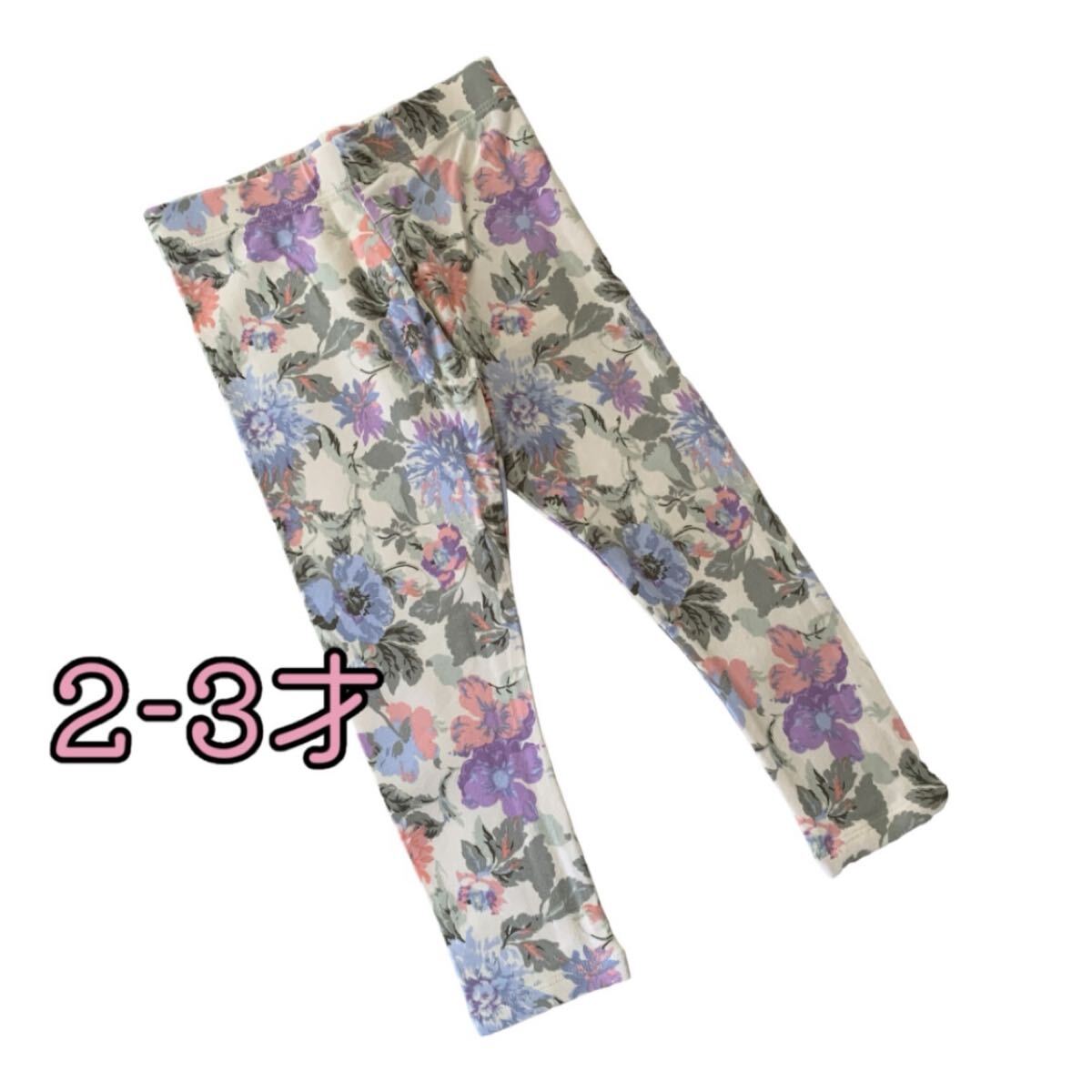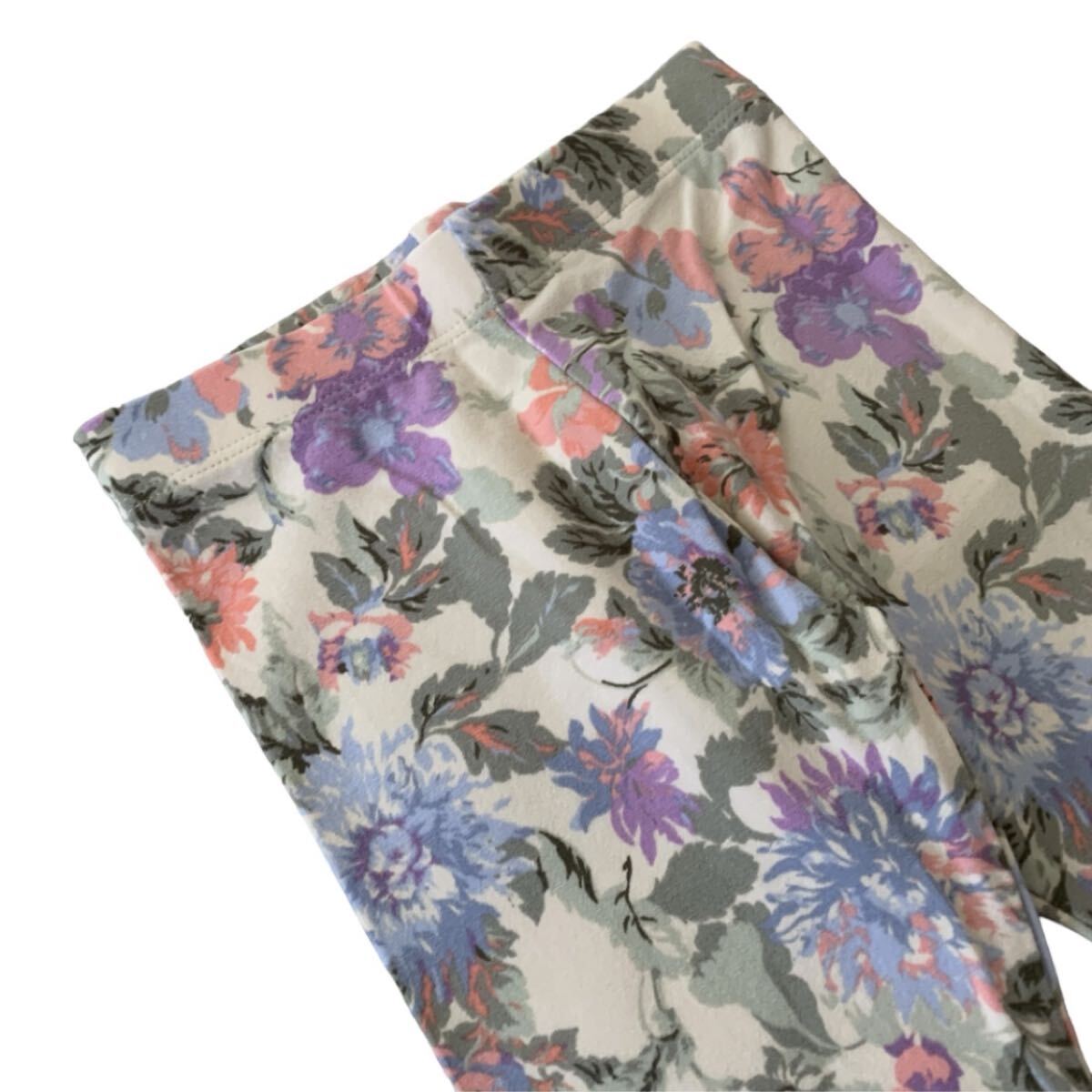 エレガントなコーラルオレンジ、ブルー、パープルの花柄のレギンス♪