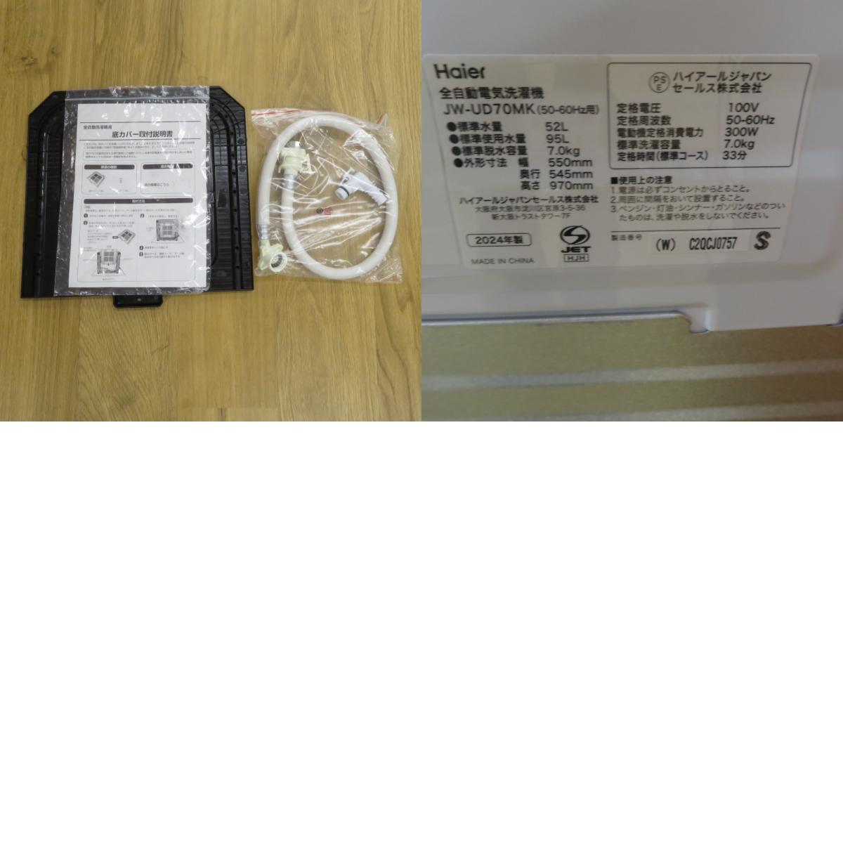 | Haier ハイアール 洗濯機 洗濯機 7kg アウトレット品 JW-UD70MK 未使用品 |