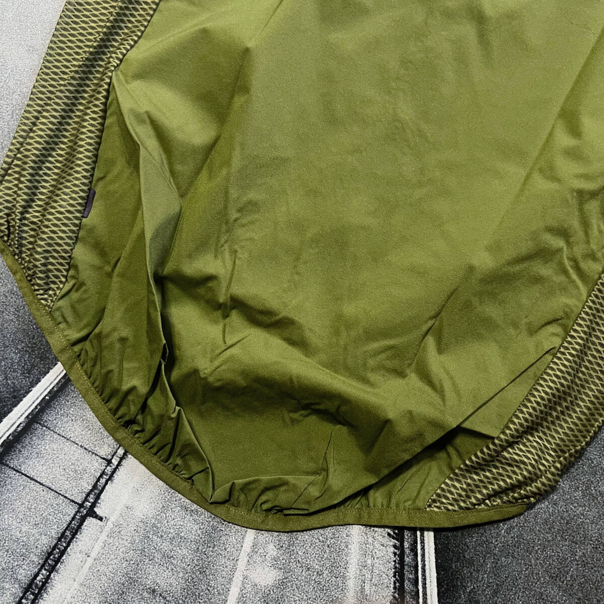 DWR(耐久撥水)加工を施したナイロン素材を使用。高い防風性と軽い雨を防げる撥水性を備えます。