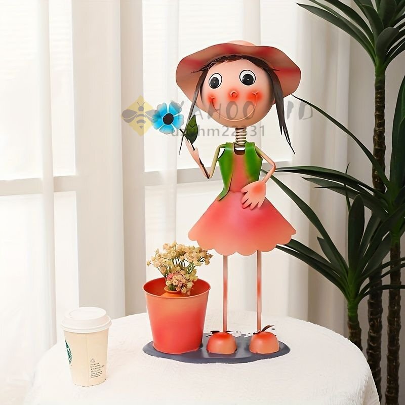 可愛い女の子のデザインが施された鉢植えは、見ているだけで心が和むアイテムです。多肉植物やサボテンとの相性も抜群で、屋内でも屋外でも素敵なインテリアとして活躍します。金属製のしっかりとした作りで、長持ちするのが嬉しいポイントです。お庭や玄関に置くだけでなく、ギフトやプレゼントとしても喜ばれること間違いなしです!
