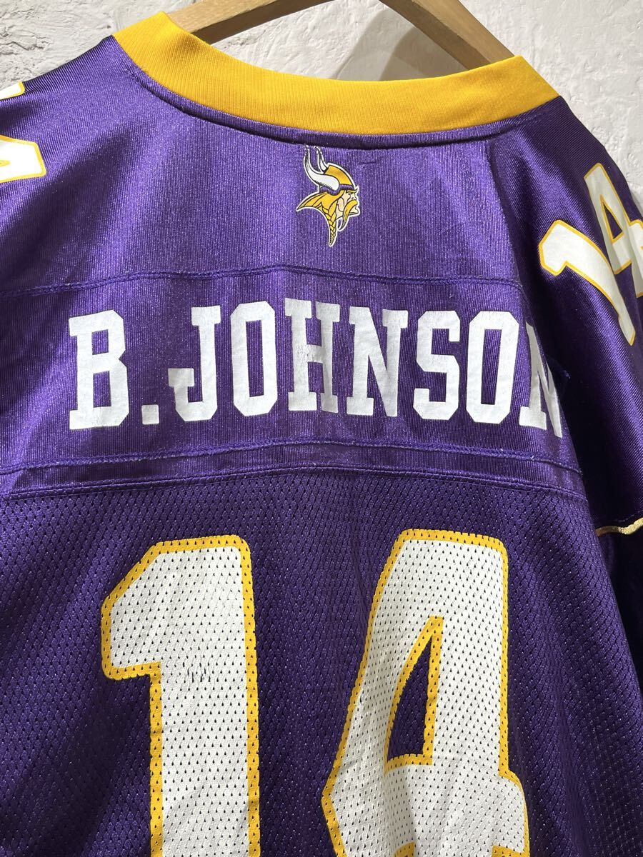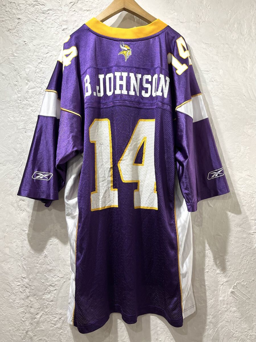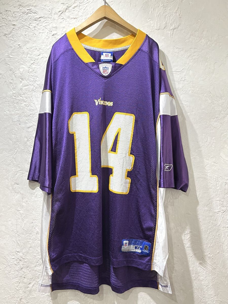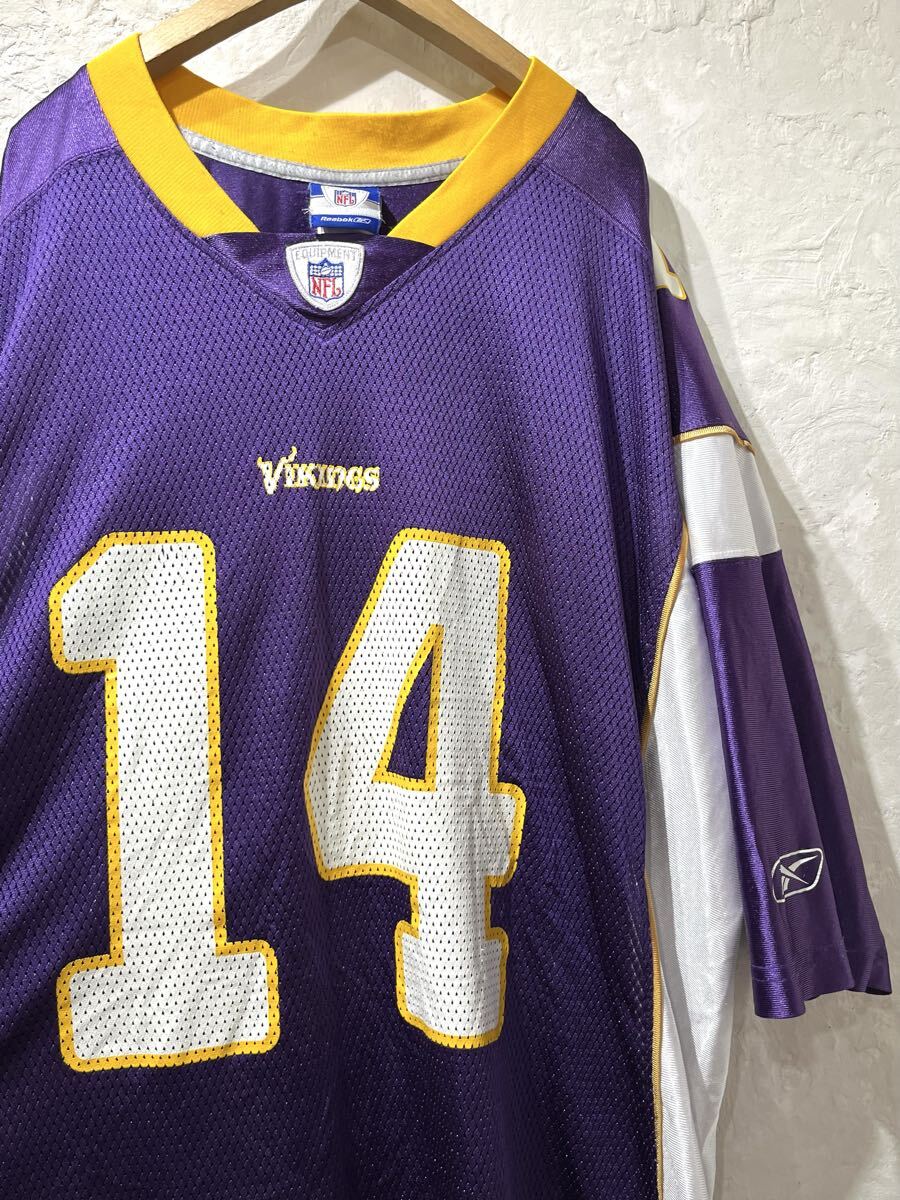 送料¥185 リーボックNFLバイキングスナイロンメッシュフットボールTシャツXL14ナンバリング入り