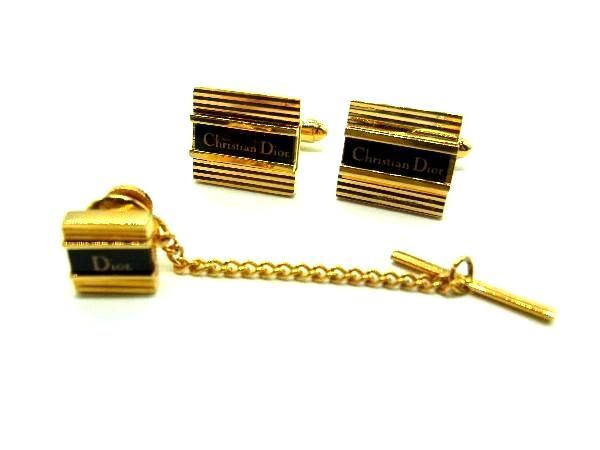 ■美品■ ChristianDior クリスチャンディオール カフス カフリンクス タイピン アクセサリー ゴールド系×ブラック系 DF0607
