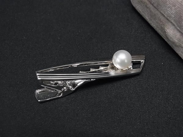 ■美品■ MIKIMOTO ミキモト 本真珠 アコヤ真珠 約7mm SV925 ネクタイピン タイクリップ アクセサリー ビジネス シルバー系 DE7781
