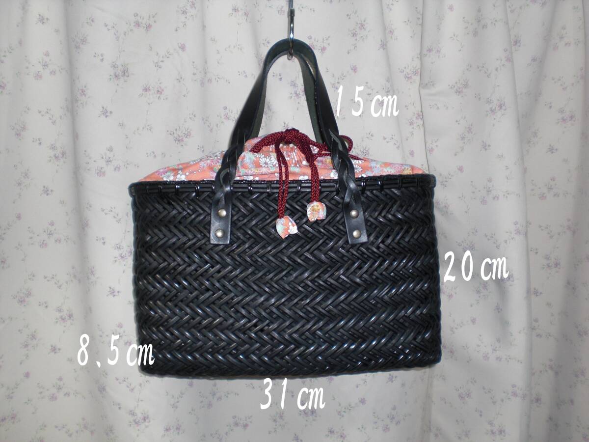 籐(皮籐)の手提げバッグ★綸子小花柄 #Y004