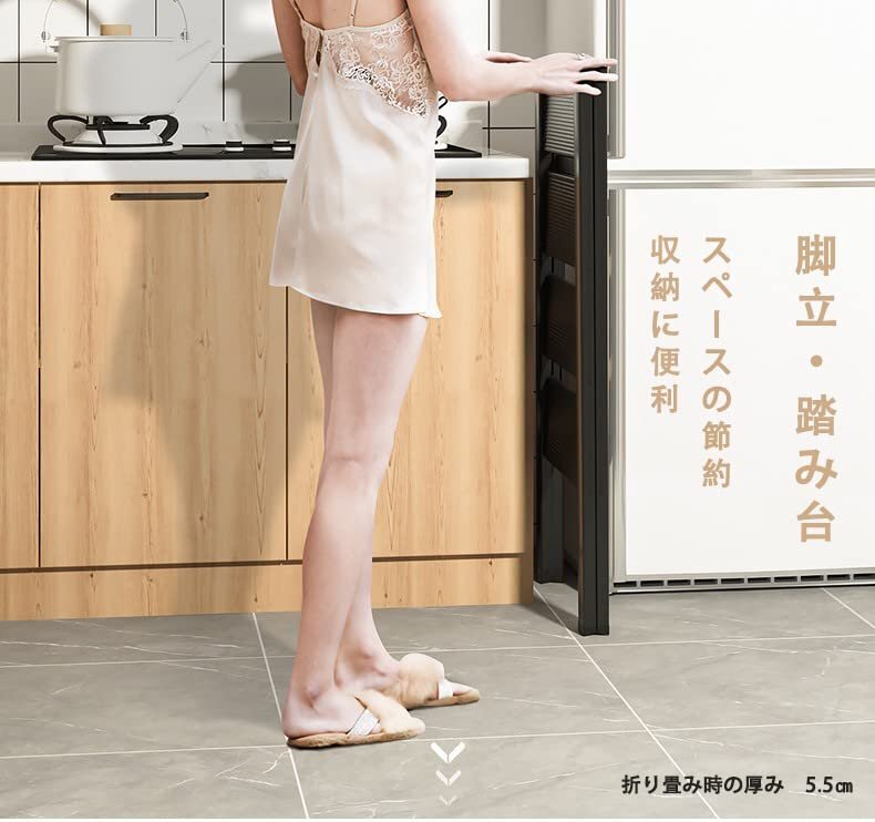 【省スペース】このはしごは、手を傷つけないで、簡単に折りたためます。狭い空間でも収納でき、非常に便利です。