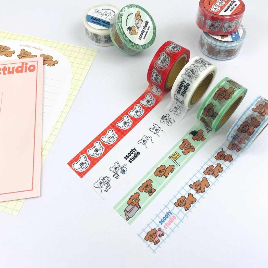 scooty studioのゆるカワな文具雑貨シリーズ 韓国発の文具雑貨ブランド[scooty studio]のステーショナリーシリーズこちらは定番人気アイテム[マスキングテープ]紙素材で手帳やノートなどいろんなトコロを可愛くデコちゃおう。いろんな種類があるから組み合わせて自分流にデコレーションするのもいいねサイズ:幅18mmx7メートル[Made in Japan]