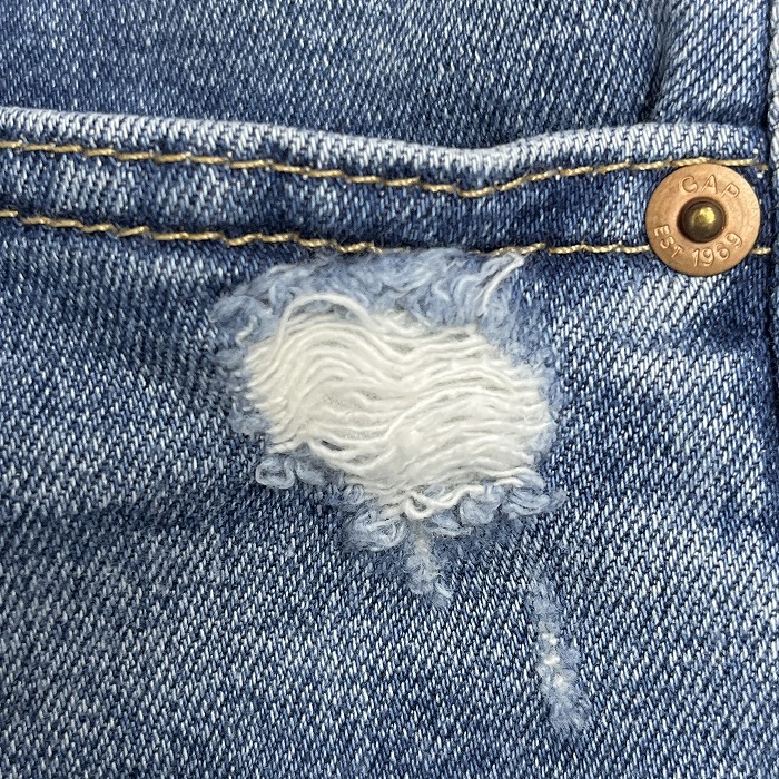 商品タイトル | ギャップ GAP デニム テーパード パンツ ストレッチ ジーンズ ジーパン 古着加工 綿×ポリエステル×ポリウレタン 25 ブルー 青 レディース |