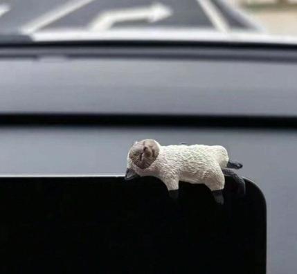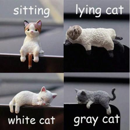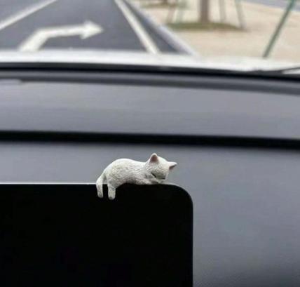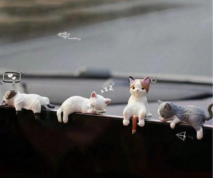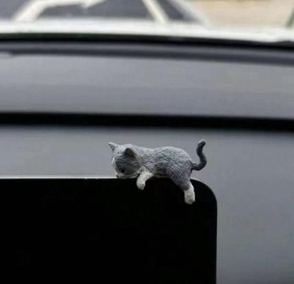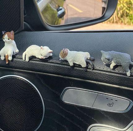 ダッシュボードやデスクにちょこんと座る、眠たげでキュートな猫たち
