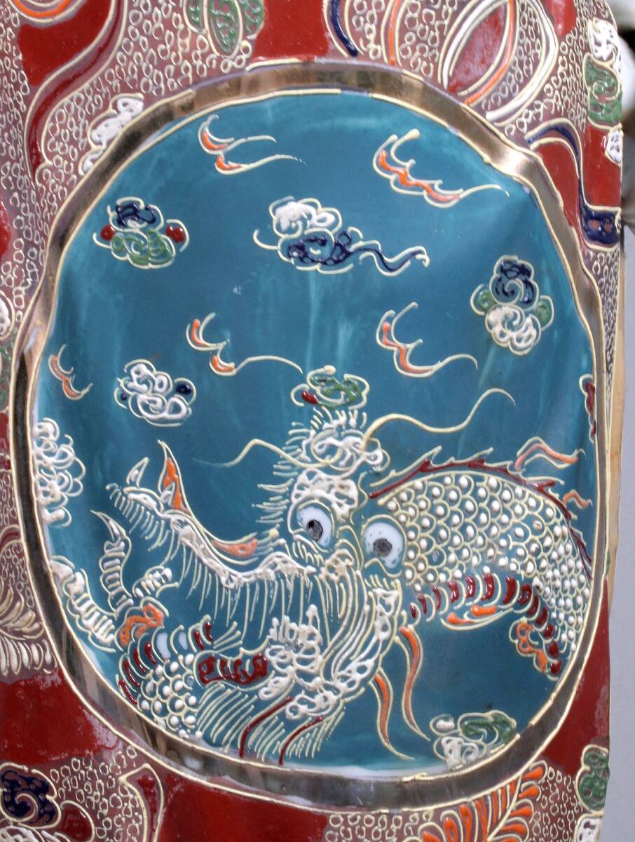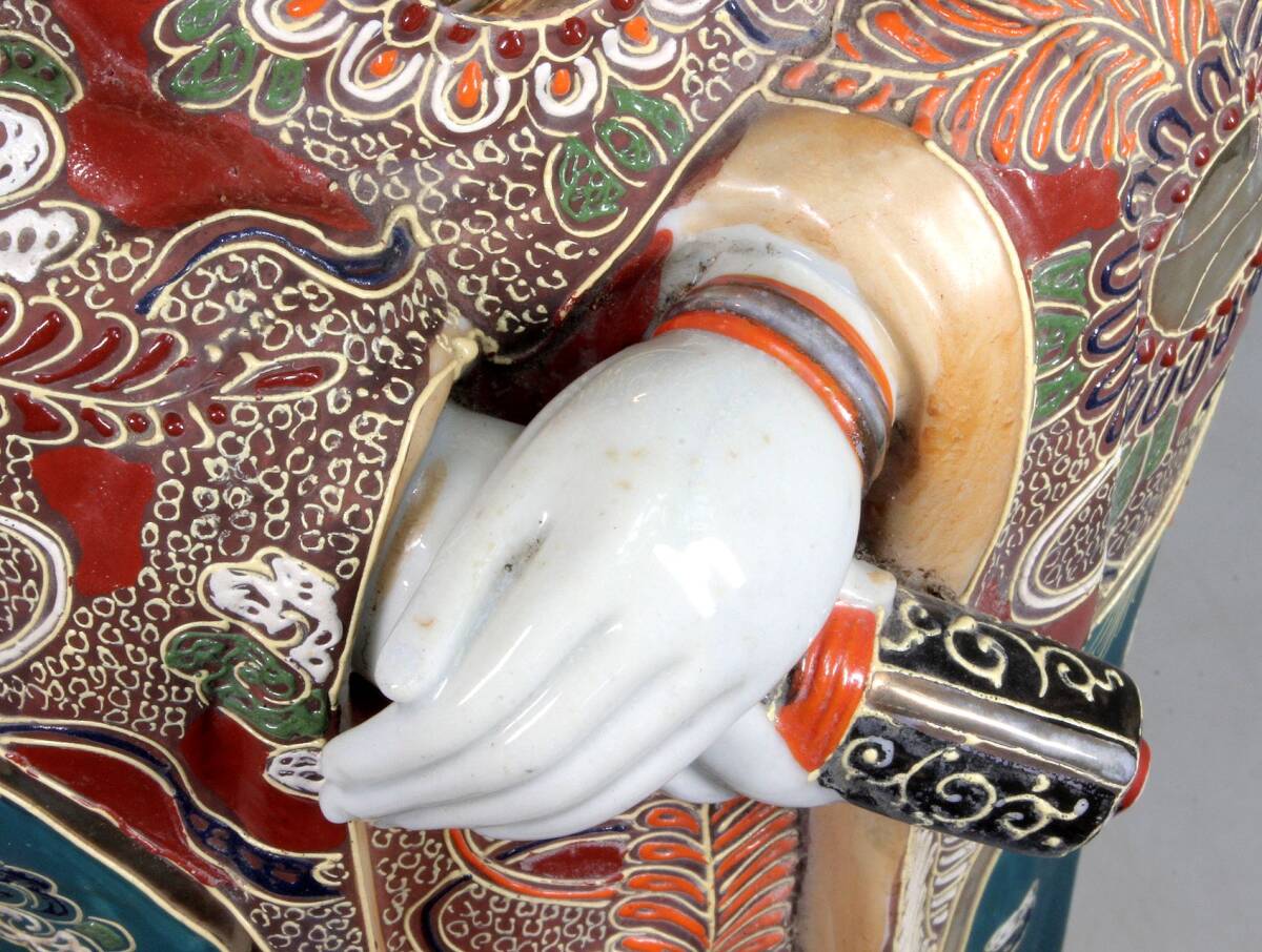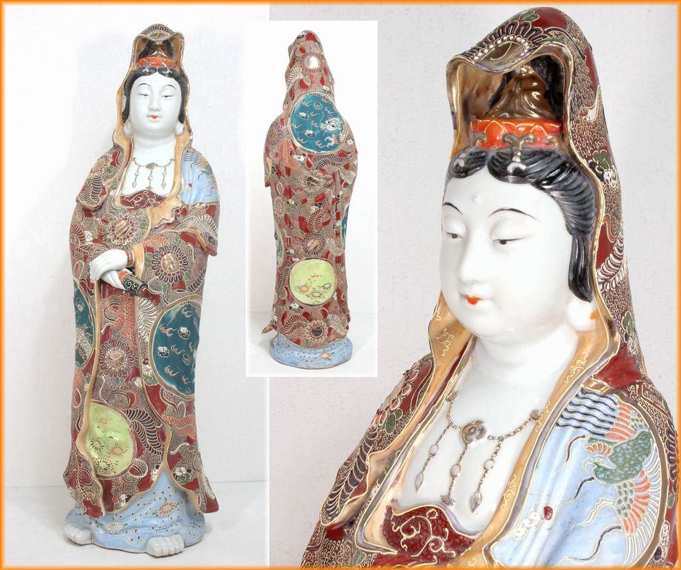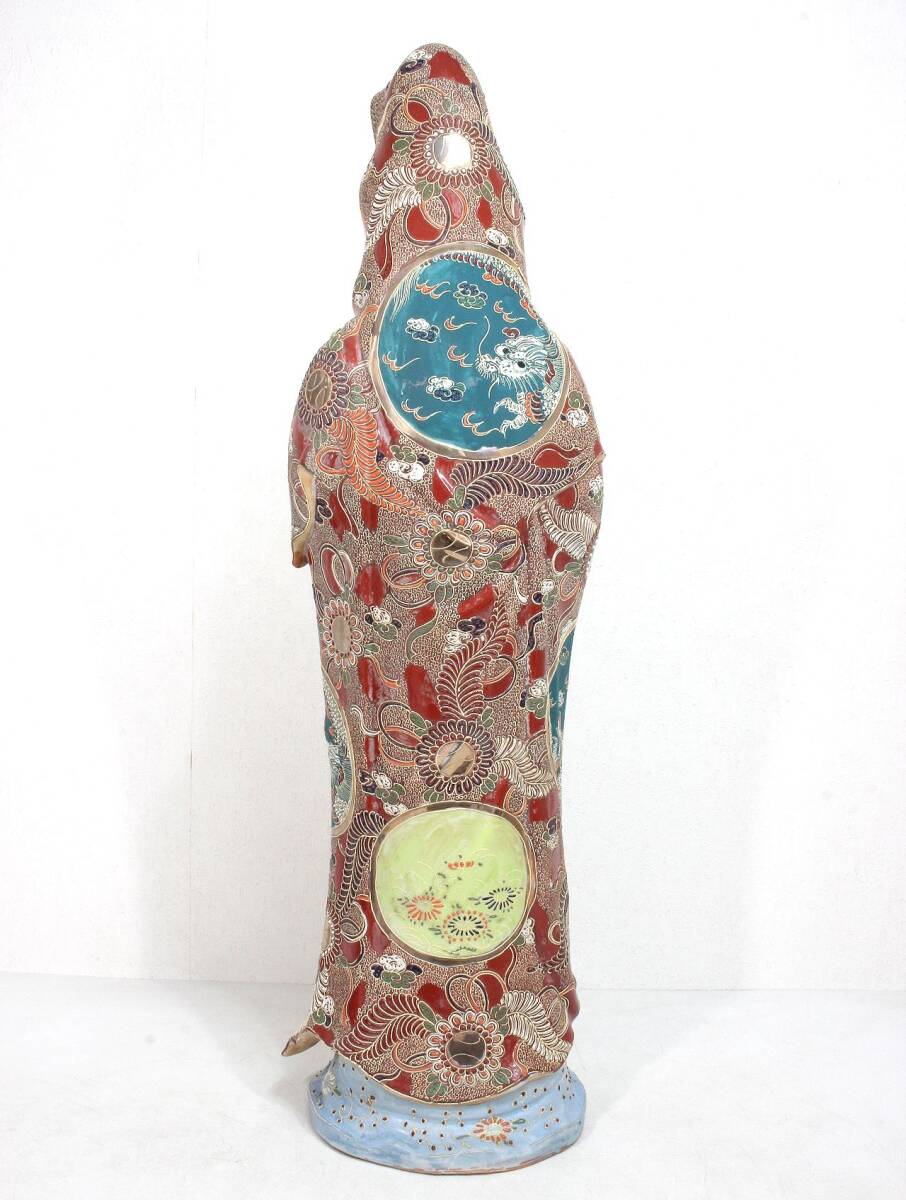 古九谷 九谷焼 金彩色絵 龍鳳凰花唐草細密盛上絵付 観音菩薩像 高さ約62.5cm 陶製 置物 仏像 仏教美術 古美術品