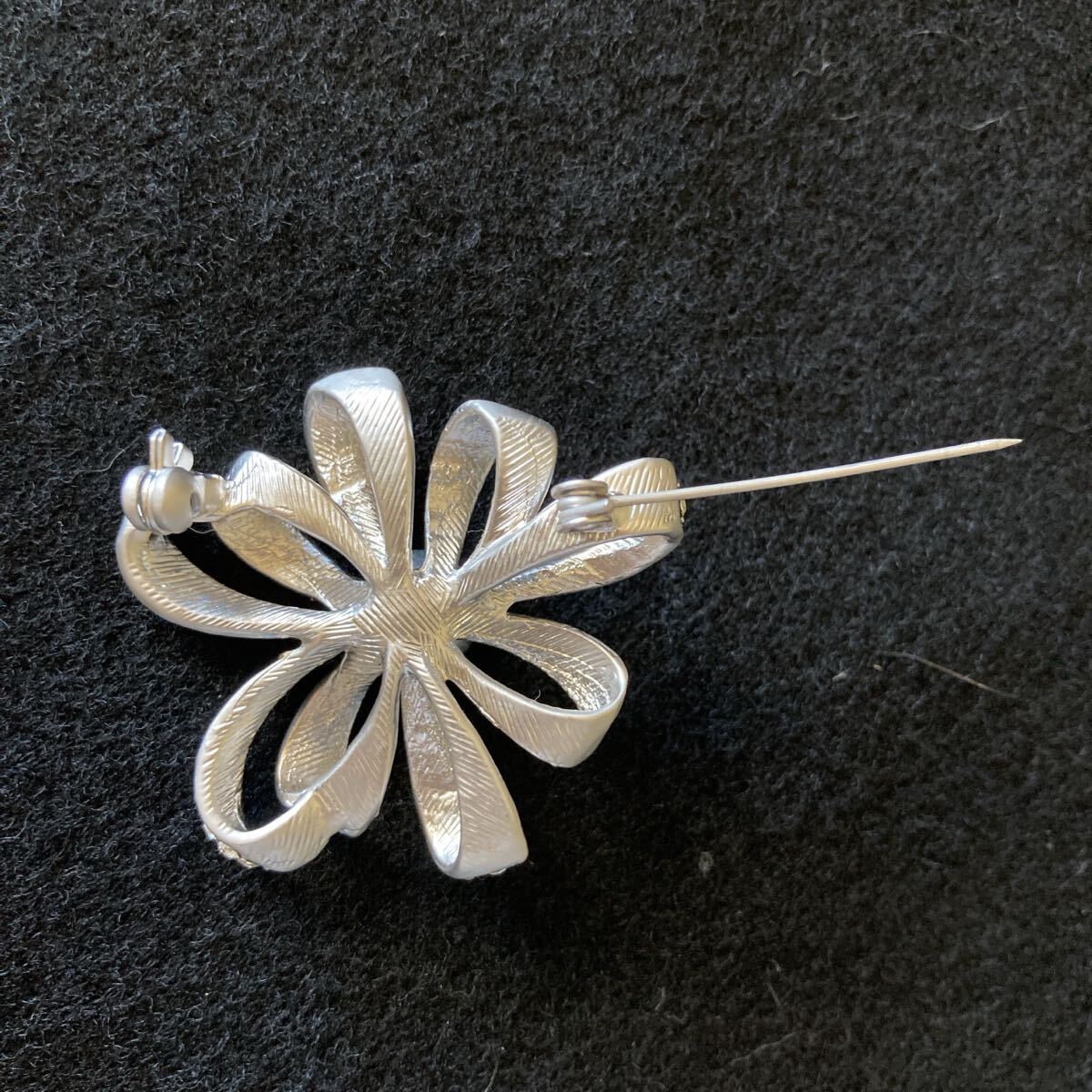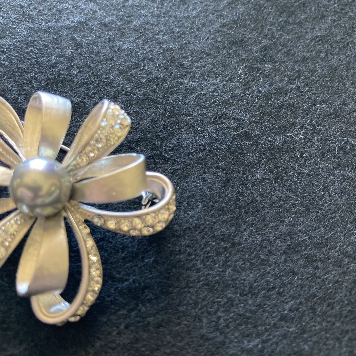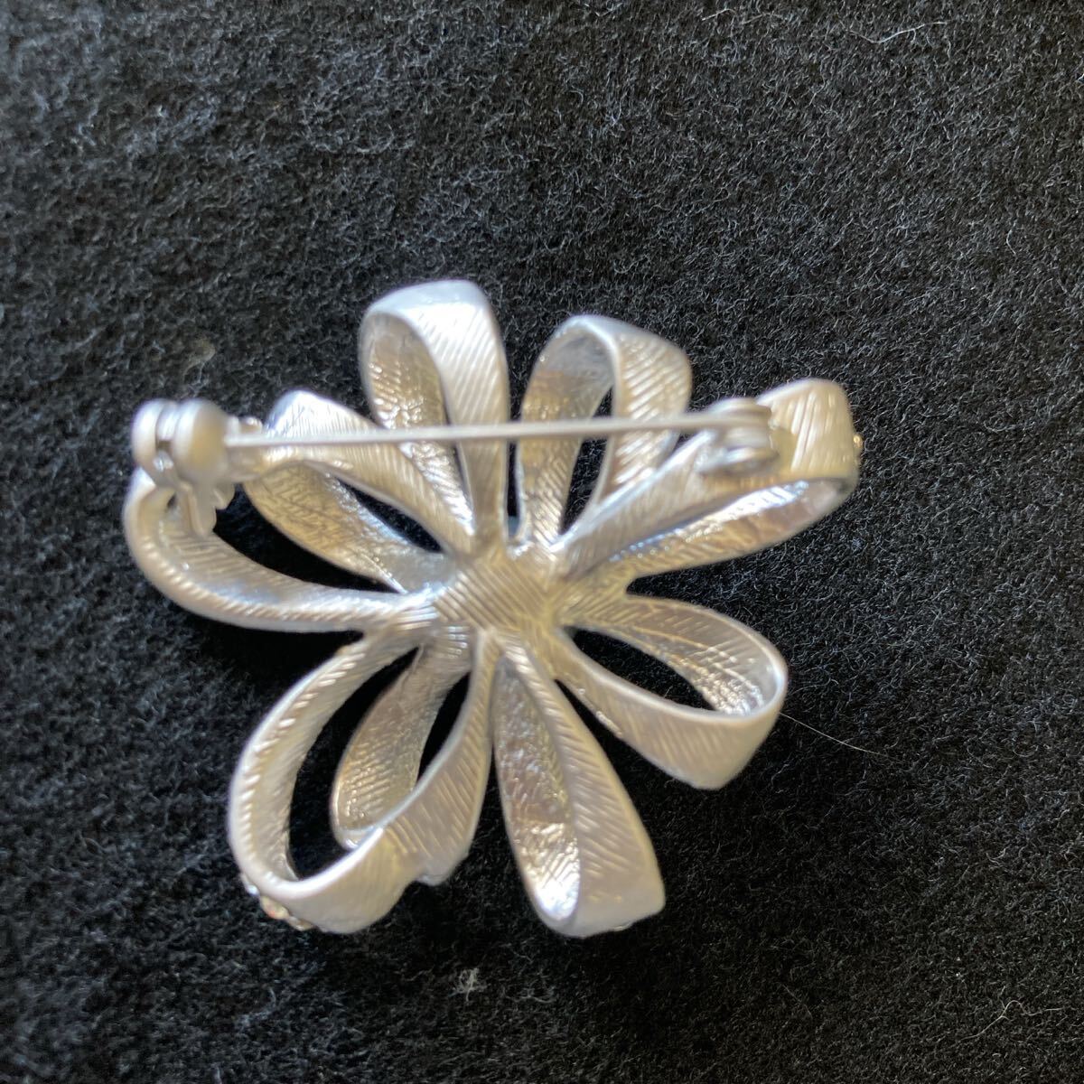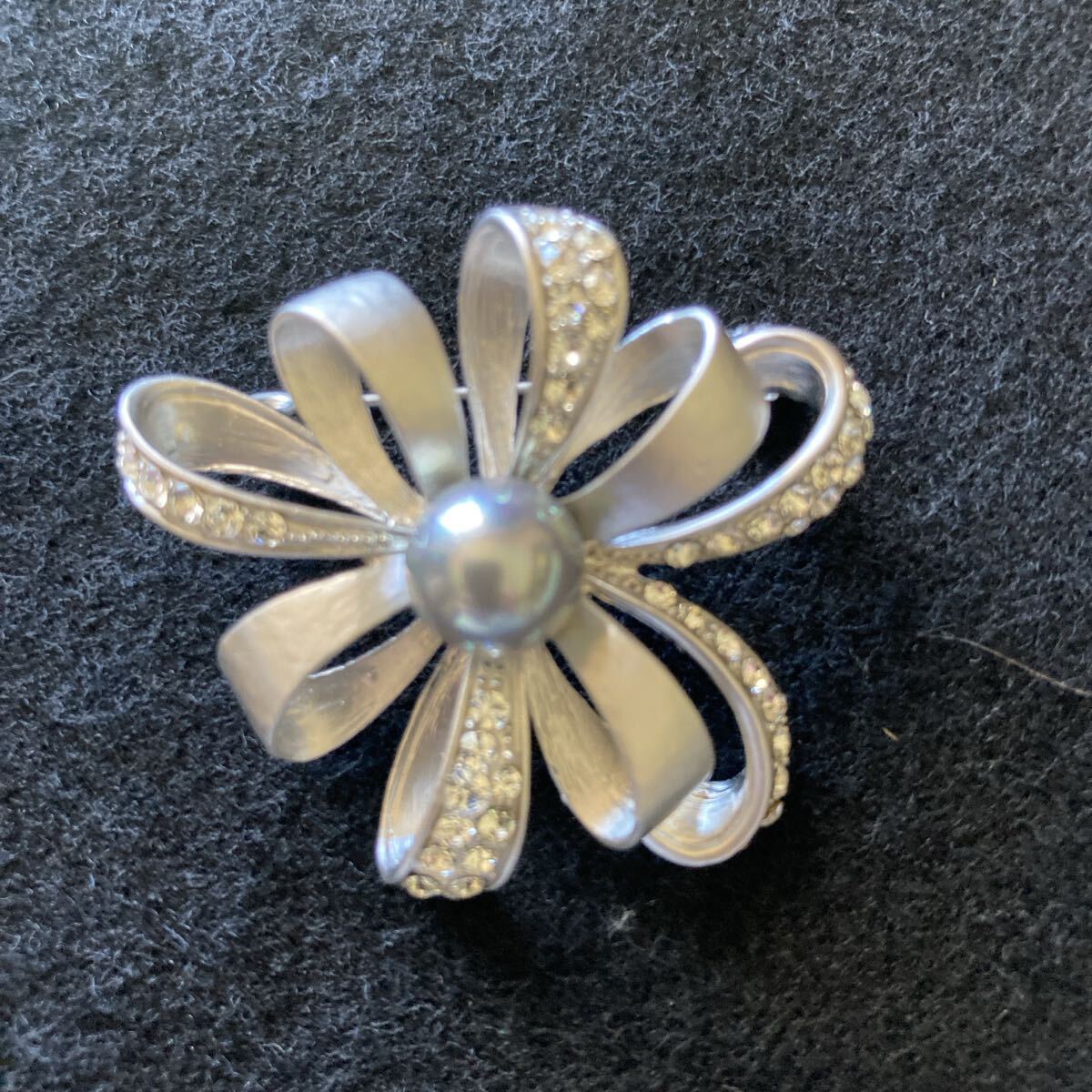 ブラックパール ラインストーン シルバー リボン ブローチ