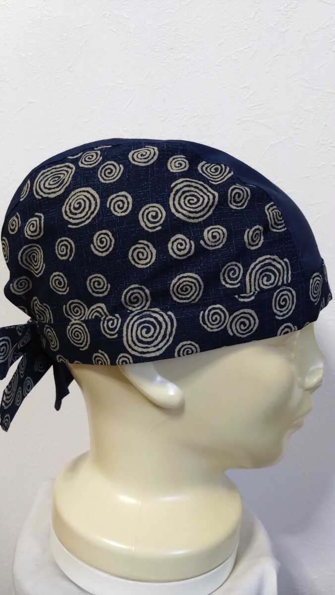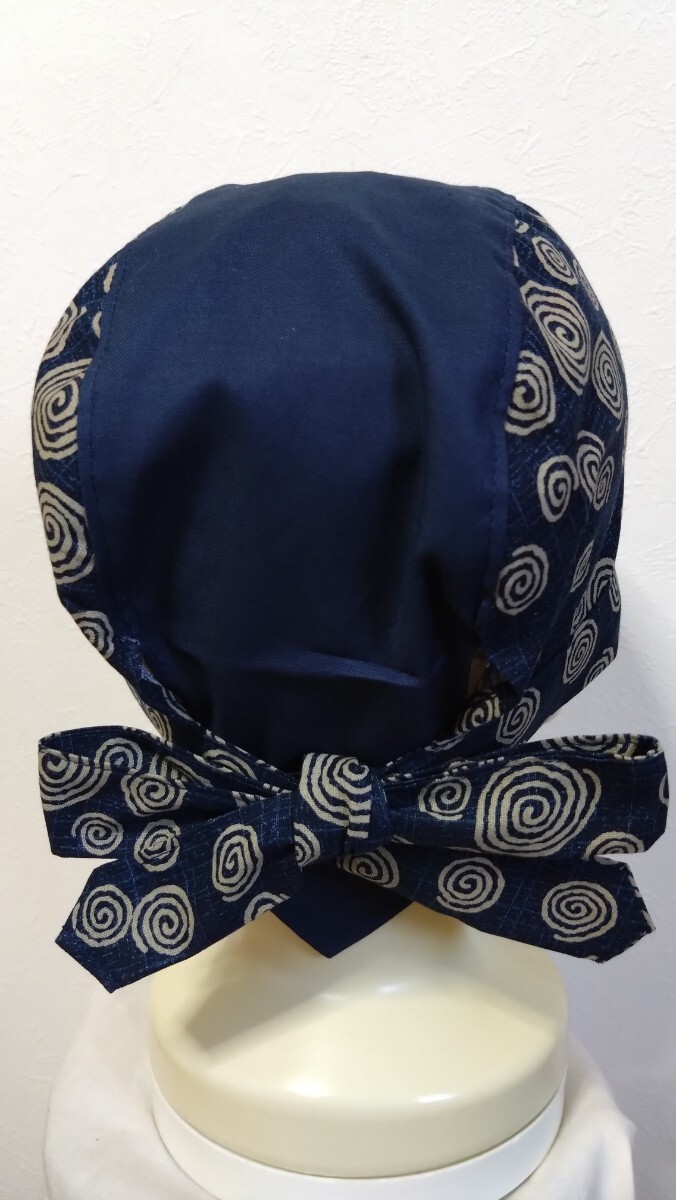 短★バンダナキャップ★ハンドメイド 和柄 うずまき×無地 渦巻 紺
