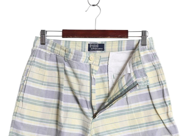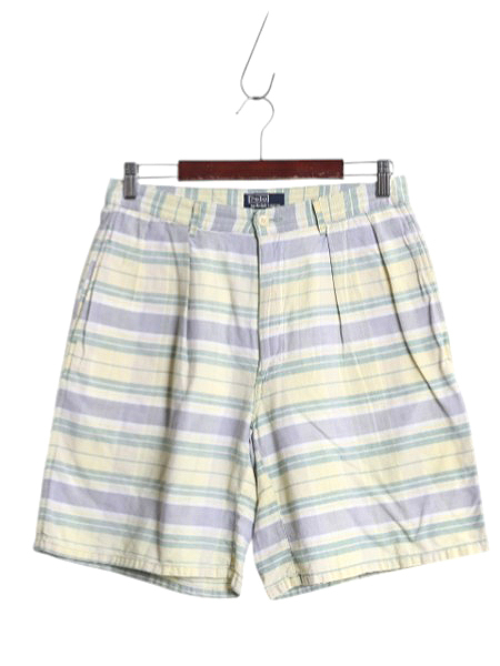 | 商品名 | 90s USA製 ポロ ラルフローレン チェック コットン ショートパンツ 実寸 31 / オールド ショーツ 短パン ツータック マルチカラー ゆったり |