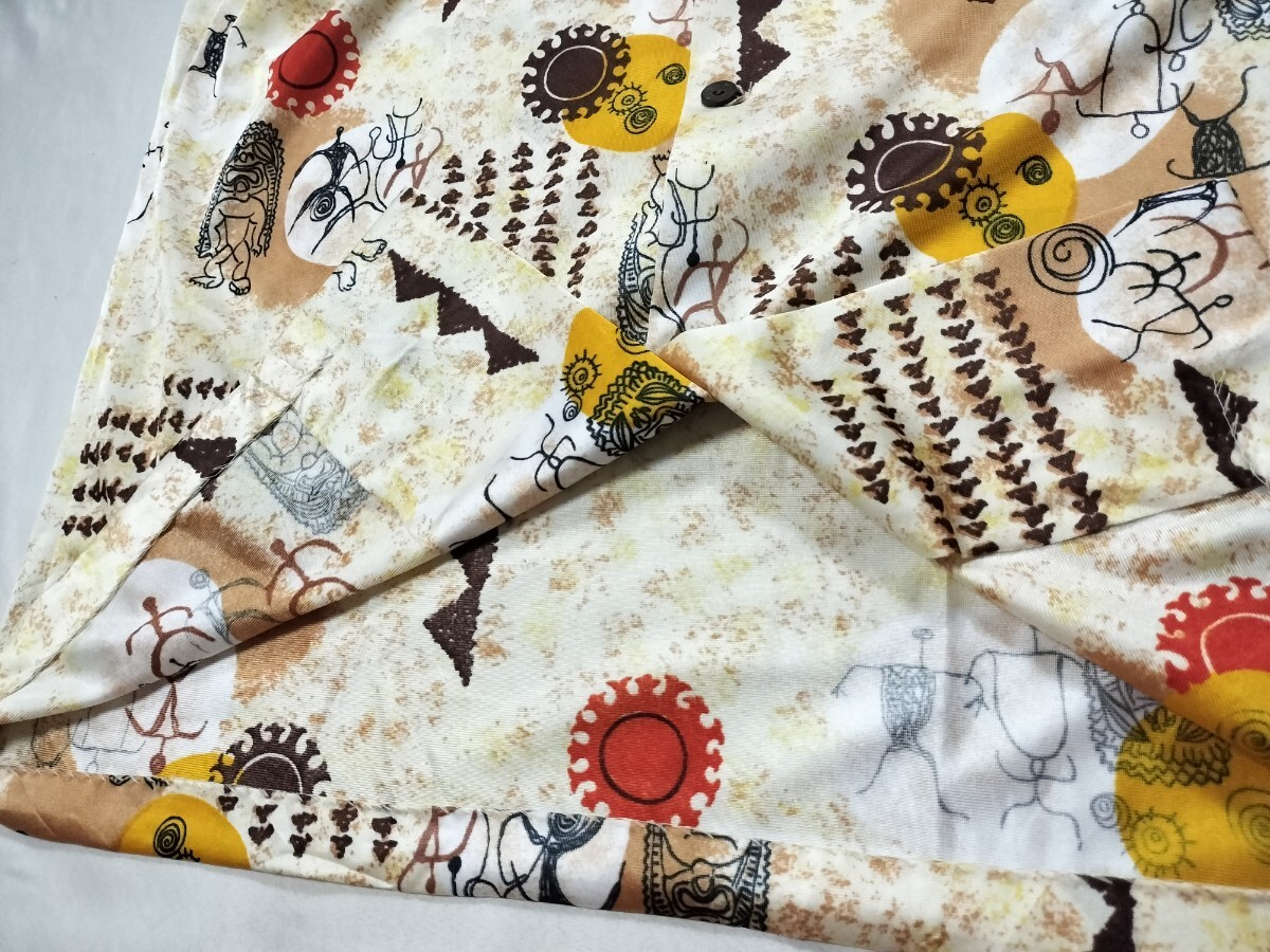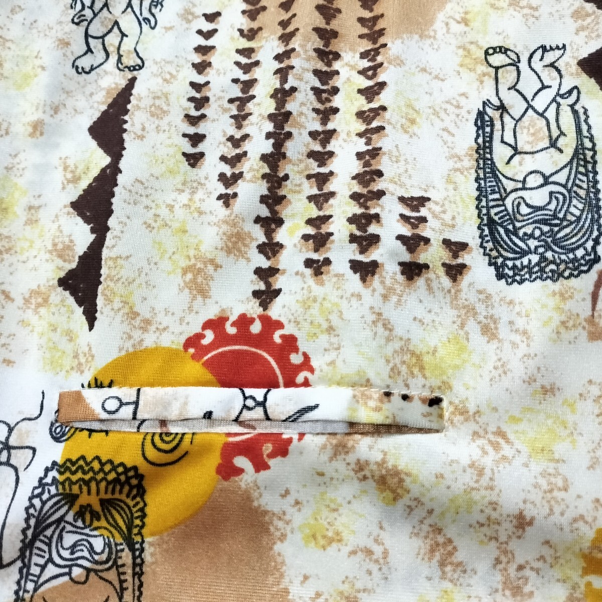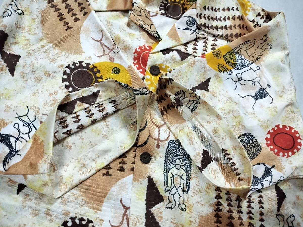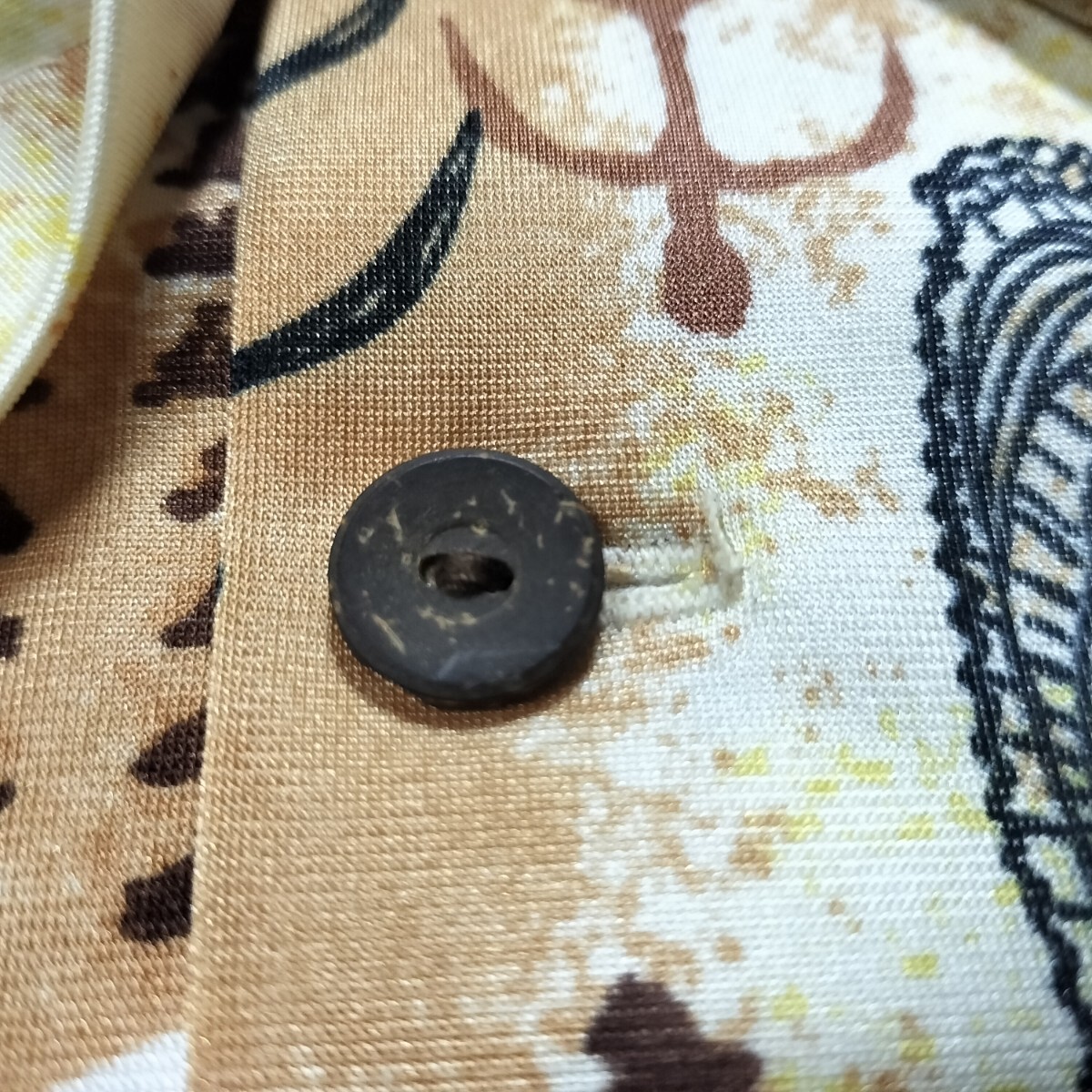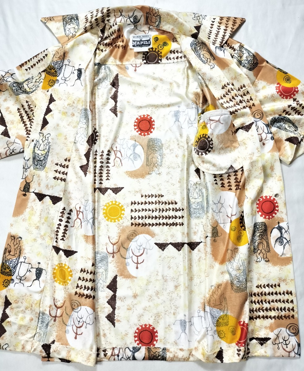 ほぼデッド 70s NAPILI アロハシャツ TIKI アトミック柄 ハワイ製 ブラウン クリーム ビンデージ オープンカラー