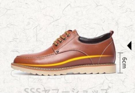 メンズ シークレット シューズ ビジネス スニーカー デオドラント ソール 靴 紳士靴 6cmUP 背が高くなる 走れる24cm-27cm ブラウン