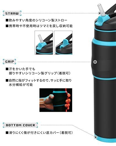 ブランド:ピーコック魔法瓶工業株式会社カラー:ブルーブラック視線を外したくない集中したプレイに。スピードチャージを実現した保冷ストローボトル。■真空断熱二重構造で冷たさ長持ち■しっかり水分補給できる容量650m■飲みやすい角度のシリコーン製ストロー■携帯時や使用しないときはストローを収納可能■握りやすいシリコーン製のグリップ■内瓶には塩分に強い高耐食ステンレスSUS316を使用しているのでスポーツドリンクにも対応■デスクの下からでも持ち上げやすいハンドル付き■真空断熱二重構造なので結露しにくい■滑りにくく傷が付きにくい底カバー付き型式:AKX-R65