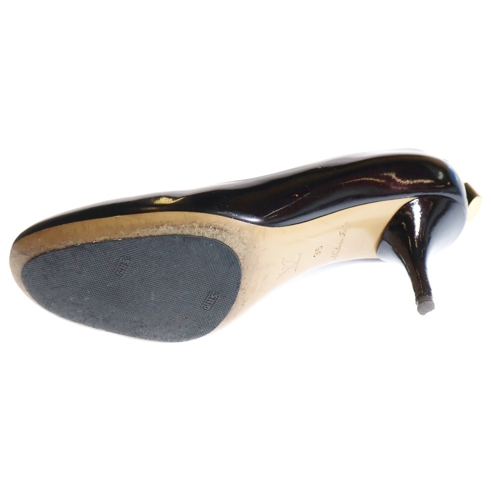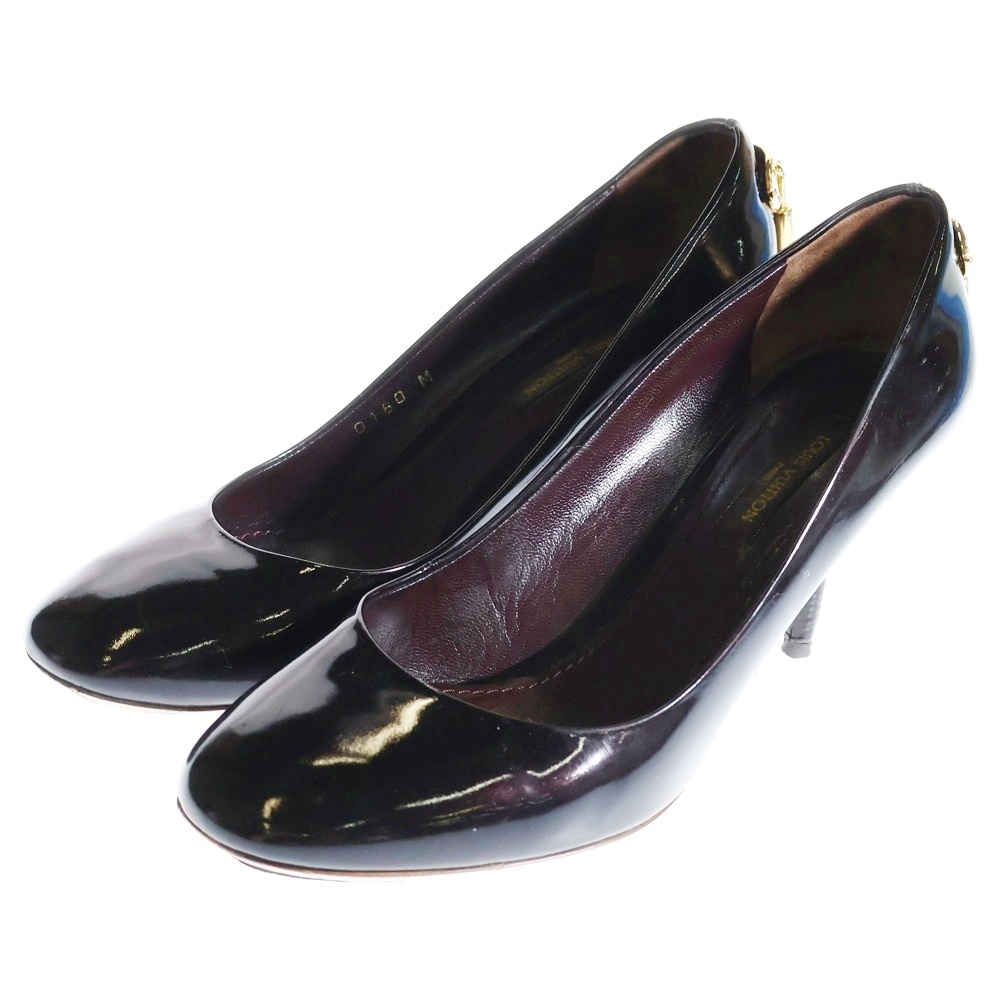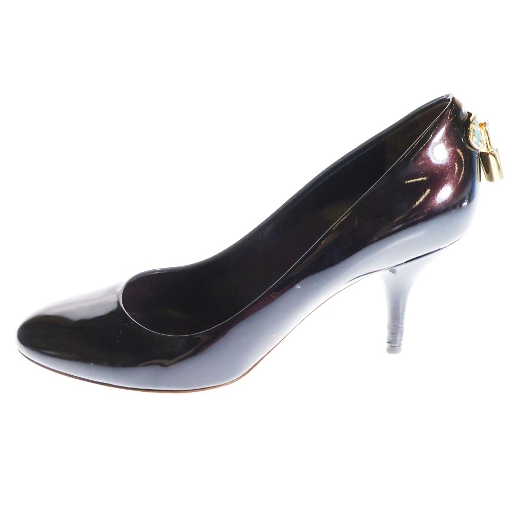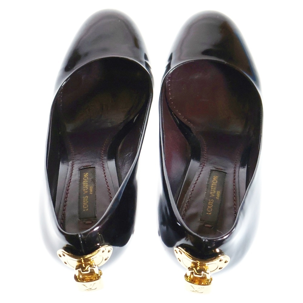 LOUIS VUITTON ルイヴィトン パドロック パンプス ヒール ダークレッド ブラック パテント #35 レディース