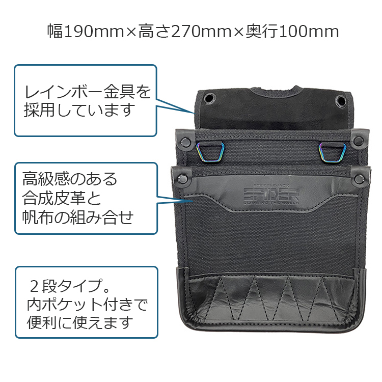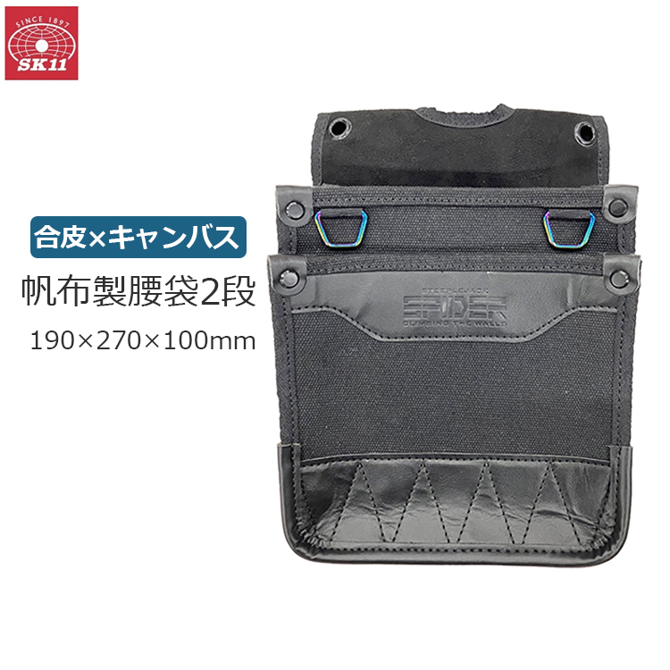 SK11 腰袋 2段 帆布製 ツールバッグ 工具差し 収納バッグ キャンバス 合皮 ブラック 黒 大工 工具 道具 収納 職人 SPD-RIP11-ML