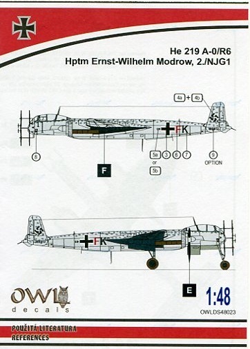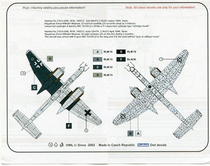 2./NJG 1(第1夜間戦闘航空団第2中隊)のハインケルHe 219A-0/R6(G9+FK)のマーキングです。1/48スケール用。新品です。S48023 | ||