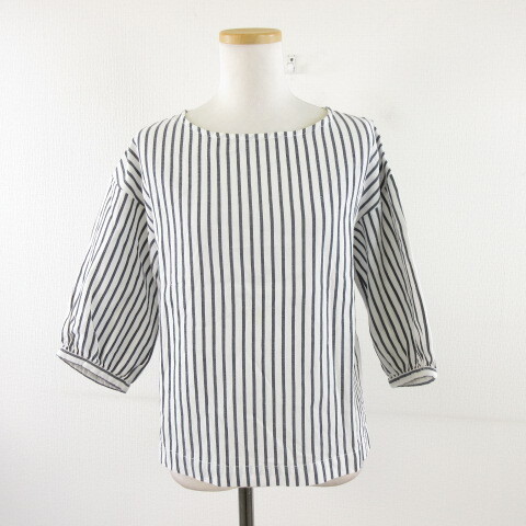 アーバンリサーチ URBAN RESEARCH FORK&SPOON カットソー ストライプ 七分袖 白 紺 One *A662 レディース