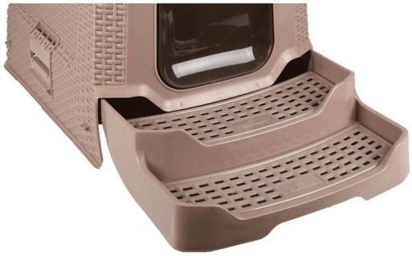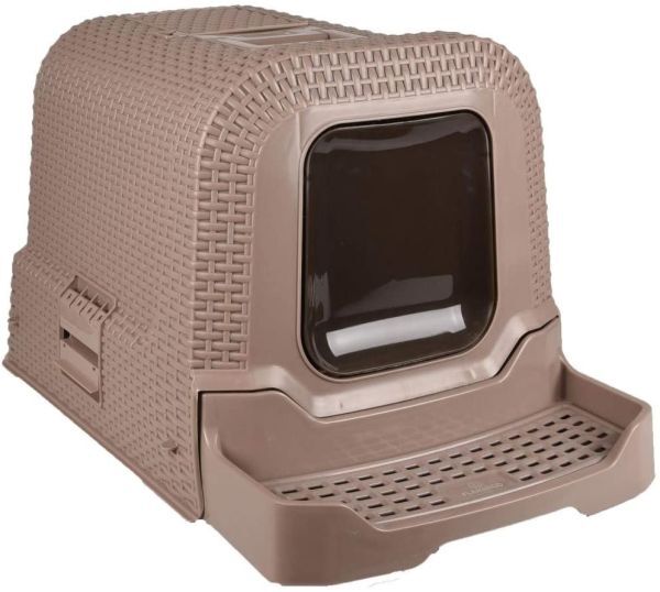 ◆北海道/沖縄配送不可◆ (ベルギーFlamingoPet) 猫トイレ 大型 フルカバータイプ (42x69x41cm) ラタン・スタイル トープ