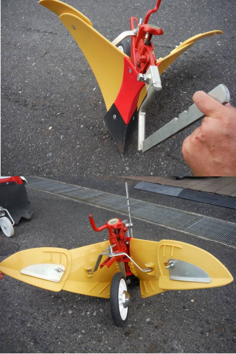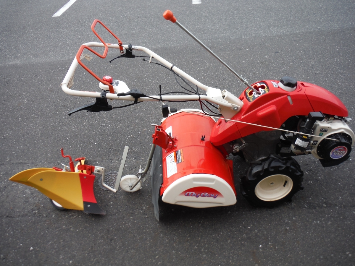 出品は写真に写るミニ耕運機と畝立培土器となります。