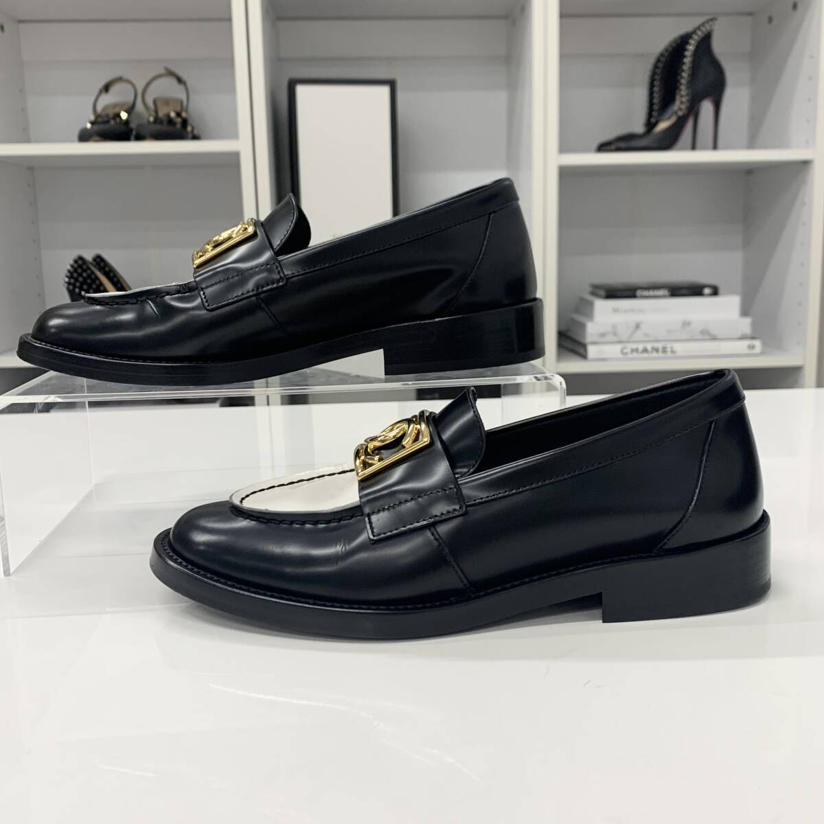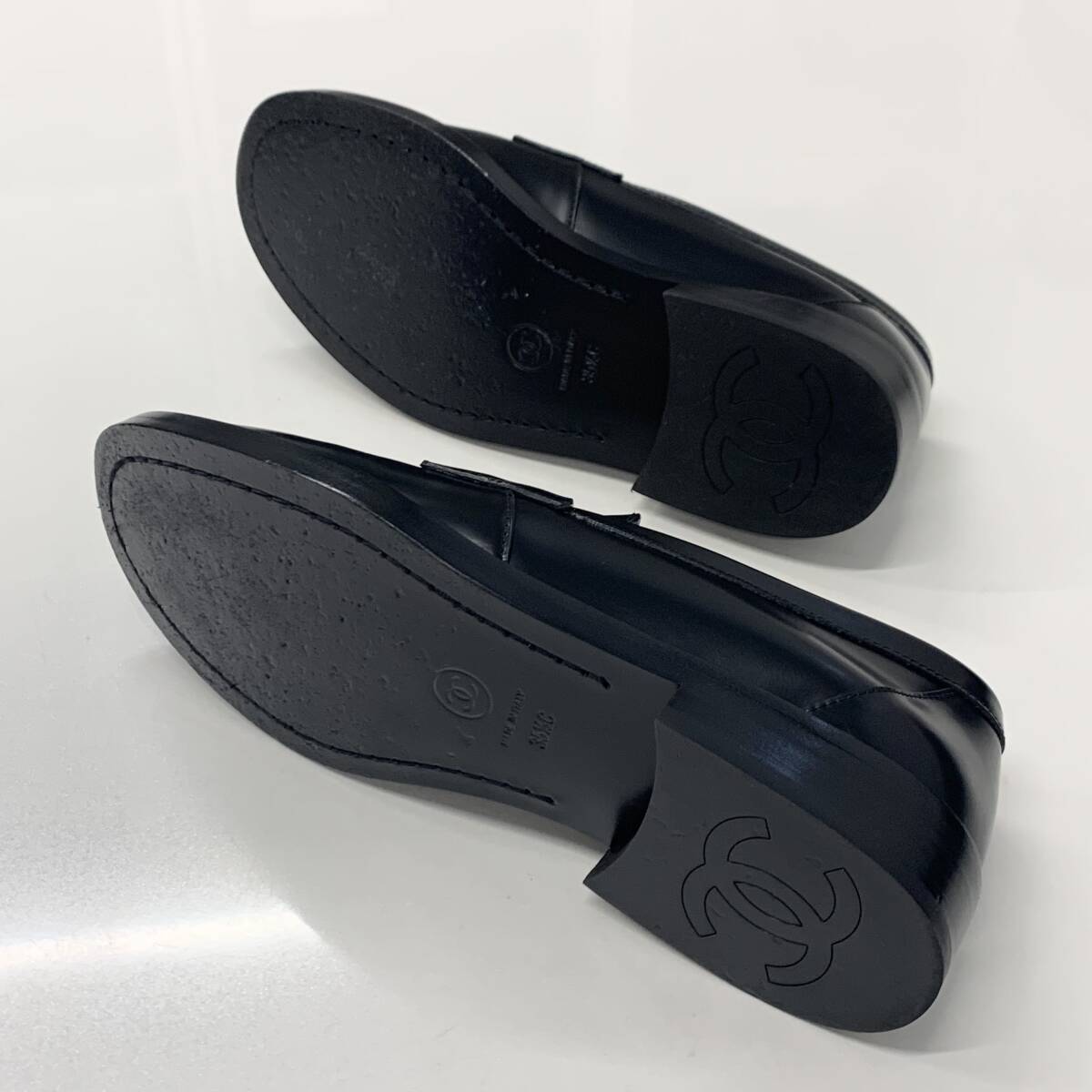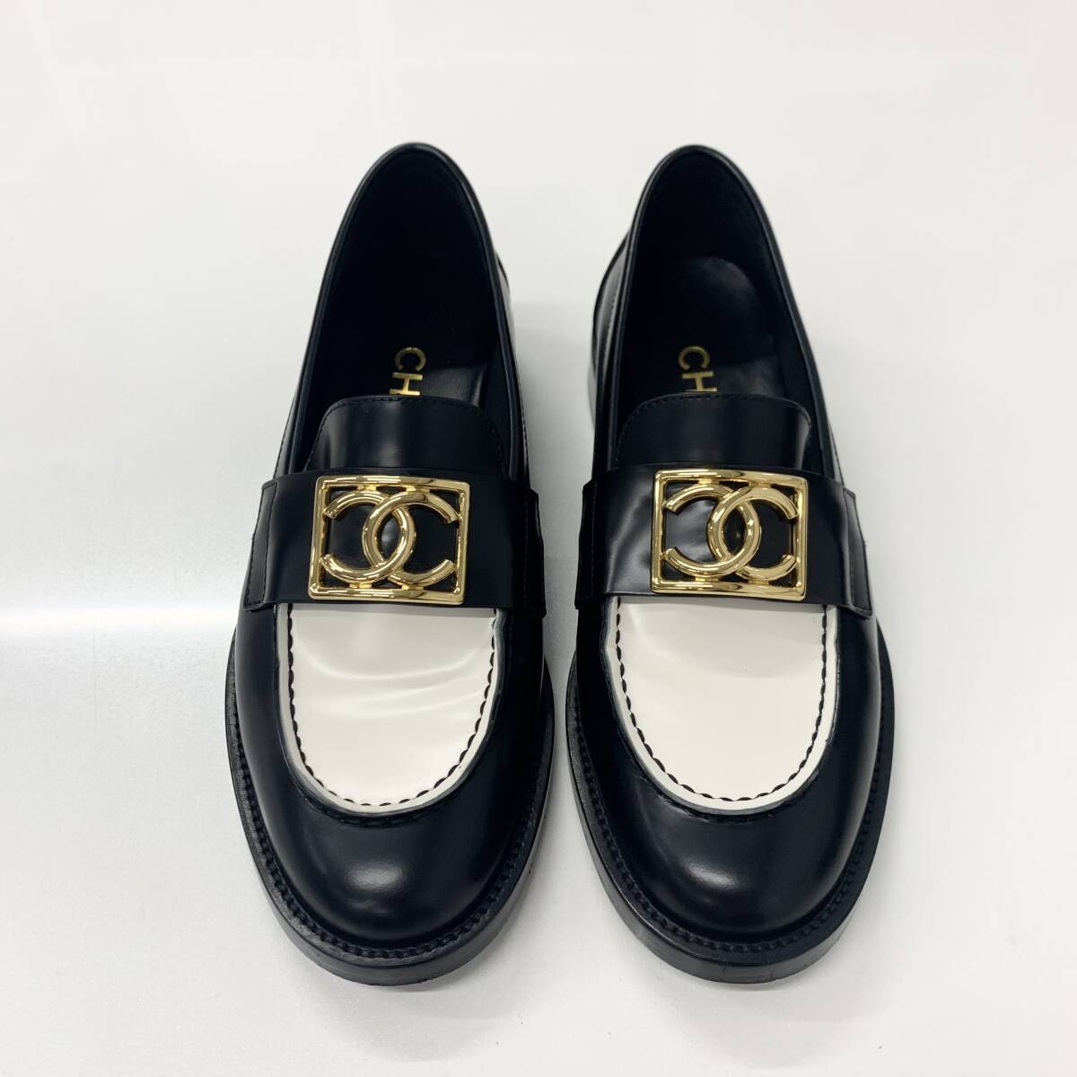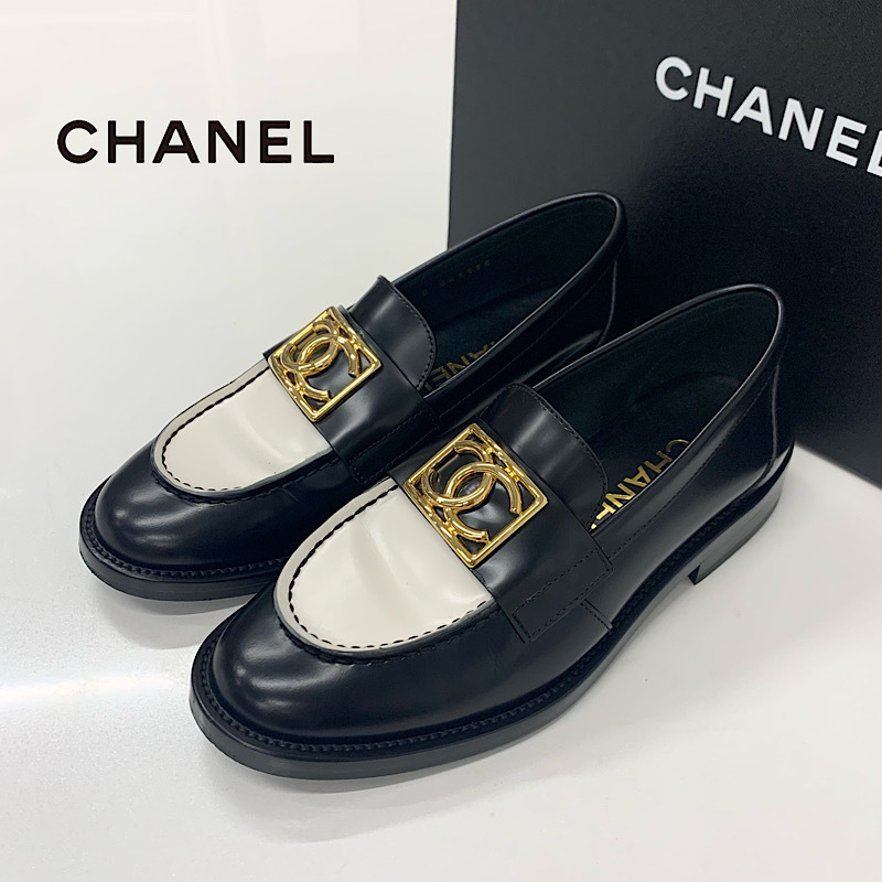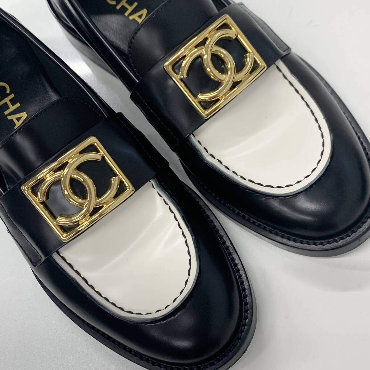 シャネル ココマーク レザー ローファー ブラック ホワイト