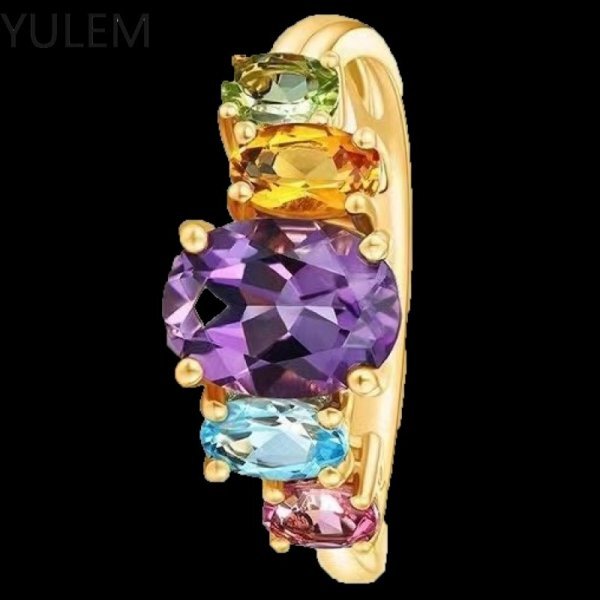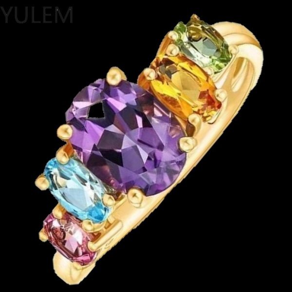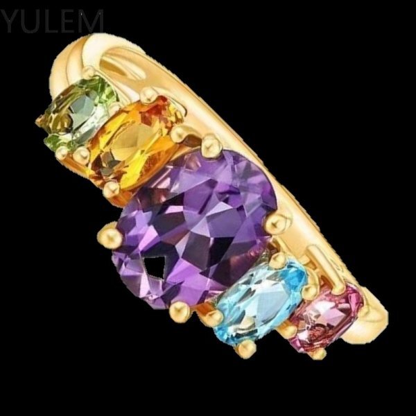 天然トパーズ、アメジスト、シトリン、ペリドット リング、女性用、日常着、ファインジュエリー