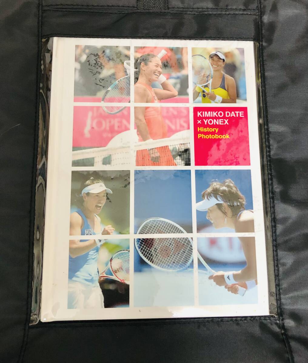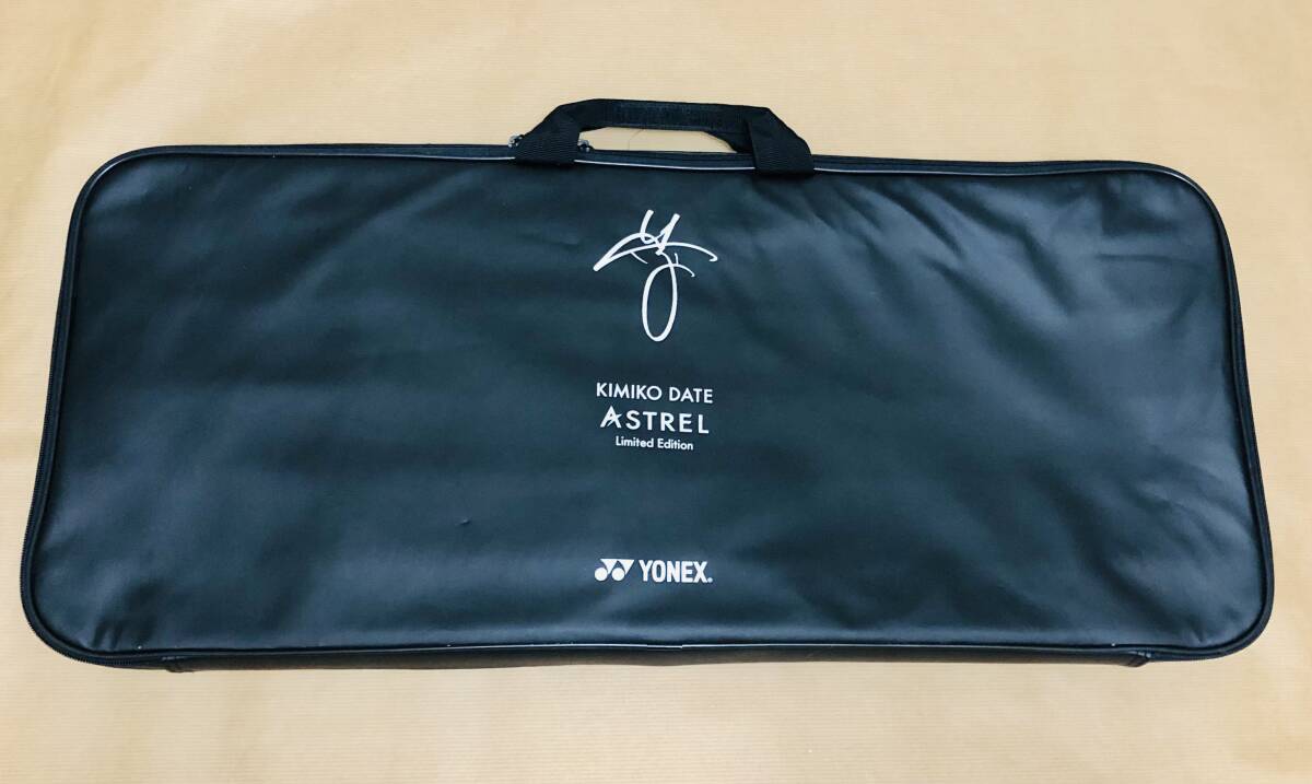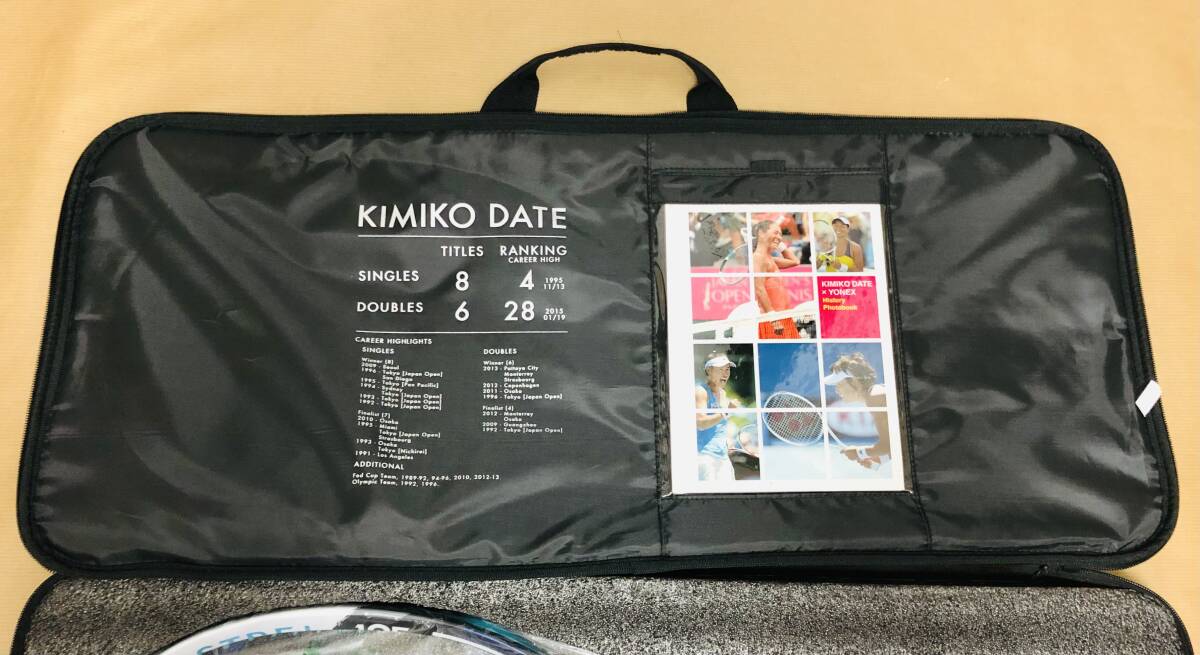 ●ケース表面に伊達のサイン、ケース内側には伊達の過去の戦績のプリント入り。 ラケットと「伊達公子-ヨネックス ヒストリーフォトブック」が収納可能。